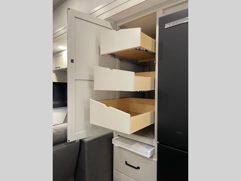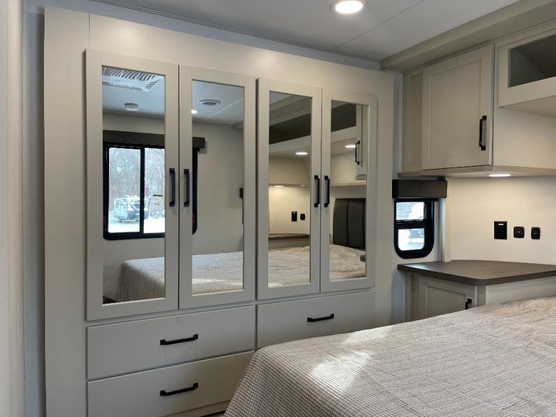 Are you looking for adventure and fun? The Momentum G-Class toy hauler by Grand Design will help you find it! You can explore during any season you choose with the Insulation Package that includes a heated and enclosed underbelly with suspended tanks, a high-capacity furnace, a moisture barrier floor enclosure, and cabinet-mounted heat ducts. Each model includes a high capacity water pump, a dovetail rear end, and 2,500-LB tie-downs anchored into the chassis. Throughout the Momentum G-Class interior, you'll enjoy many comfortable features like large panoramic windows, a shower skylight, USB chargers in the bedroom, and residential cabinetry.