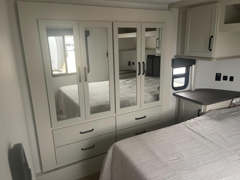 Are you looking for adventure and fun? The Momentum G-Class toy hauler by Grand Design will help you find it! You can explore during any season you choose with the Insulation Package that includes a heated and enclosed underbelly with suspended tanks, a high-capacity furnace, a moisture barrier floor enclosure, and cabinet-mounted heat ducts. Each model includes a high capacity water pump, a dovetail rear end, and 2,500-LB tie-downs anchored into the chassis. Throughout the Momentum G-Class interior, you'll enjoy many comfortable features like large panoramic windows, a shower skylight, USB chargers in the bedroom, and residential cabinetry.