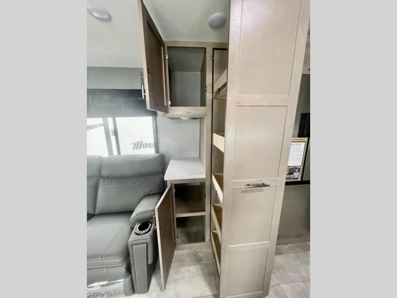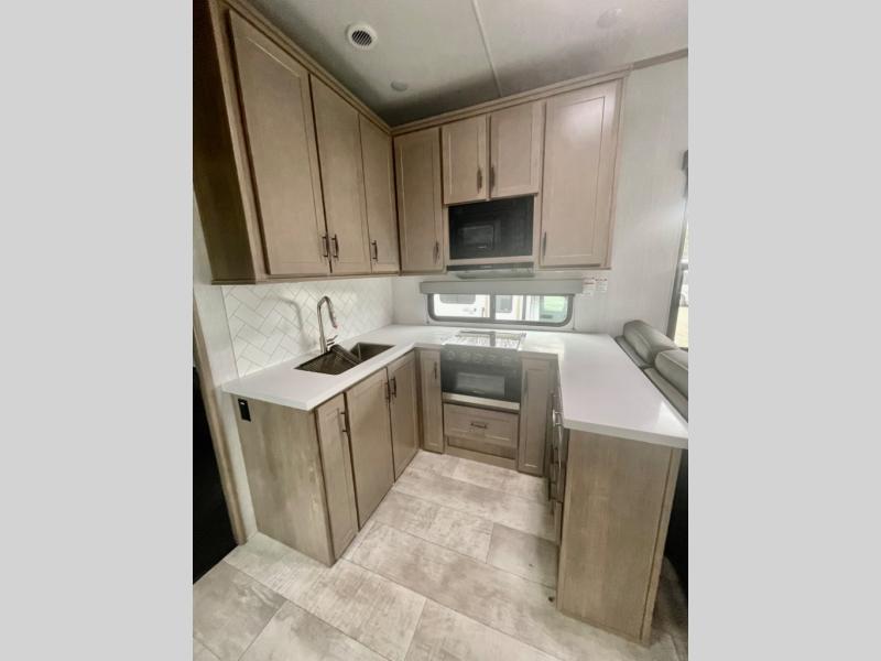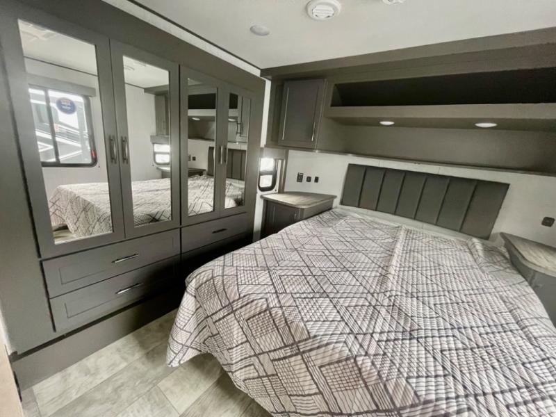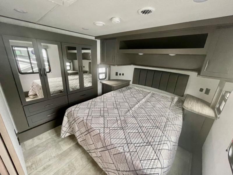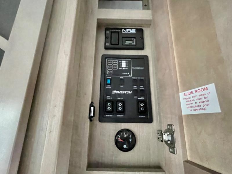 Are you looking for adventure and fun? The Momentum G-Class toy hauler by Grand Design will help you find it! You can explore during any season you choose with the Insulation Package that includes a heated and enclosed underbelly with suspended tanks, a high-capacity furnace, a moisture barrier floor enclosure, and cabinet-mounted heat ducts. Each model includes a fuel station with an interior and exterior gauge, a dovetail rear rend, and 2,500-LB tie-downs anchored into the chassis. Throughout the Momentum G-Class interior, you'll enjoy many comfortable features like large panoramic windows, a shower skylight, USB chargers in the bedroom, and residential cabinetry.