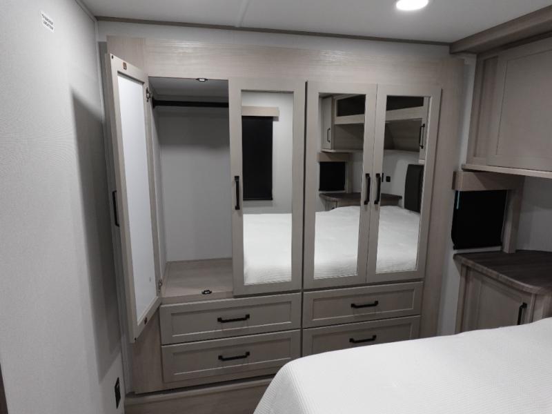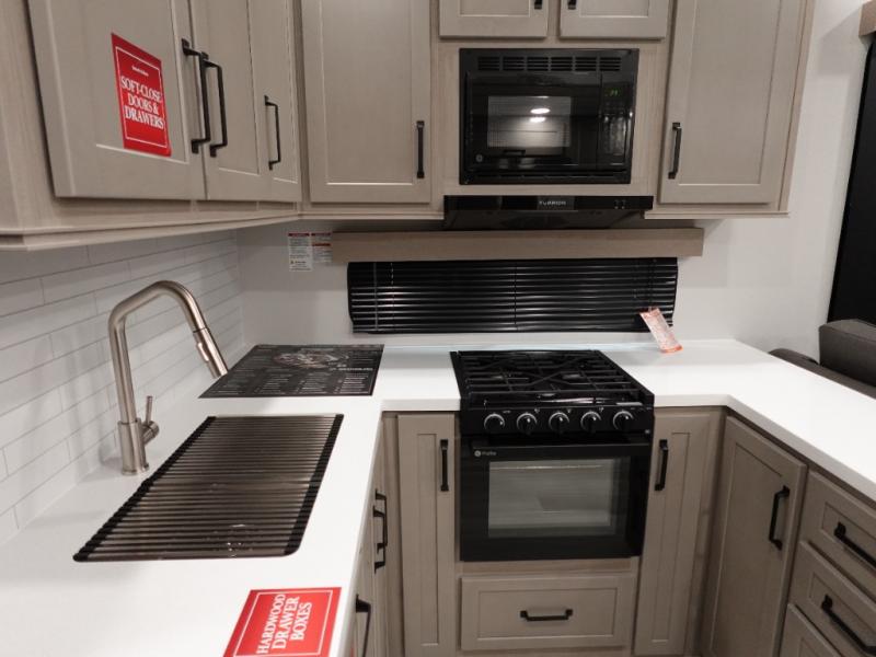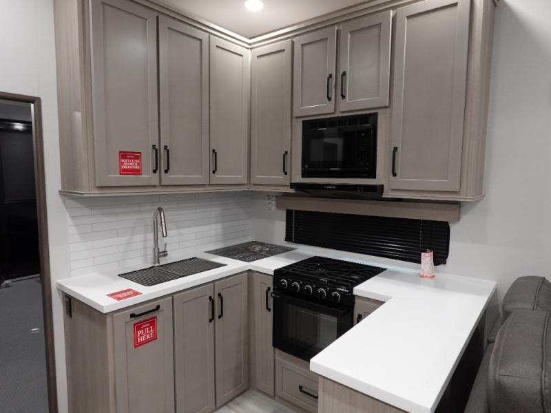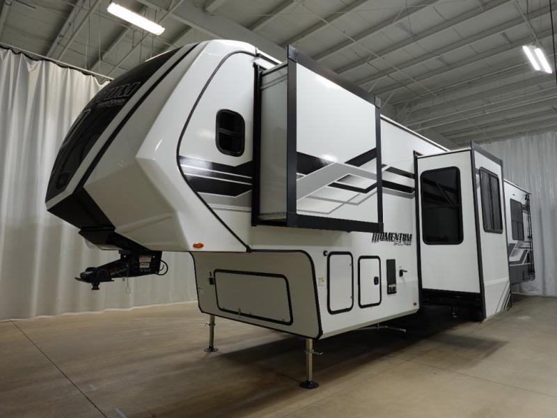 Are you looking for adventure and fun? The Momentum G-Class toy hauler by Grand Design will help you find it! You can explore during any season you choose with the Insulation Package that includes a heated and enclosed underbelly with suspended tanks, a high-capacity furnace, a moisture barrier floor enclosure, and cabinet-mounted heat ducts. Each model includes a fuel station with an interior and exterior gauge, a dovetail rear rend, and 2,500-LB tie-downs anchored into the chassis. Throughout the Momentum G-Class interior, you'll enjoy many comfortable features like large panoramic windows, a shower skylight, USB chargers in the bedroom, and residential cabinetry.