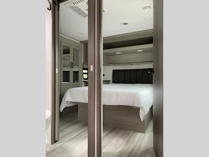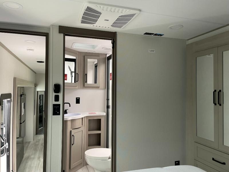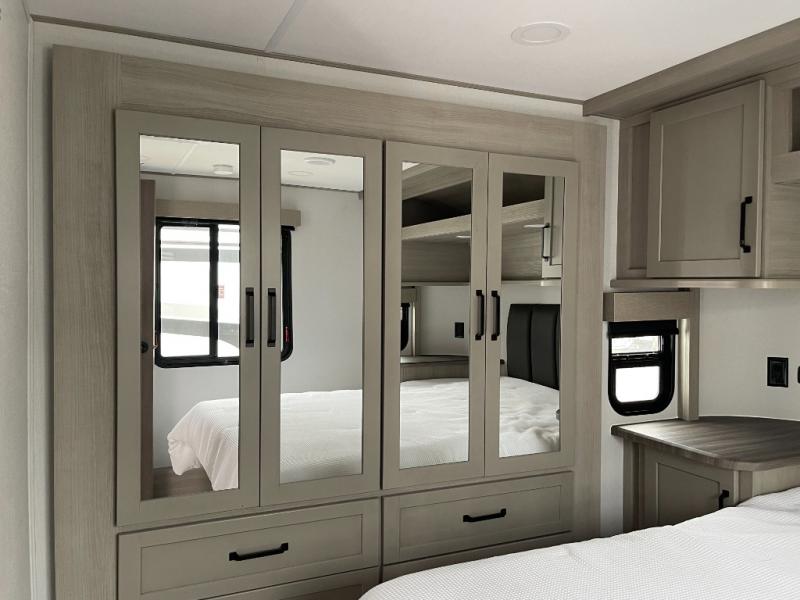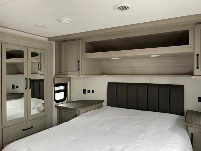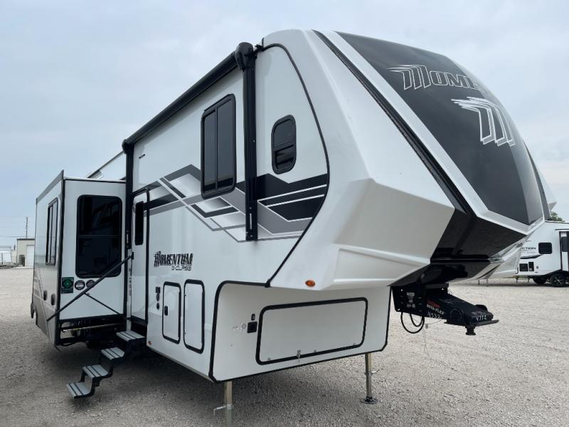 Are you looking for adventure and fun? The Momentum G-Class toy hauler by Grand Design will help you find it! You can explore during any season you choose with the Insulation Package that includes a heated and enclosed underbelly with suspended tanks, a high-capacity furnace, a moisture barrier floor enclosure, and cabinet-mounted heat ducts. Each model includes a fuel station with an interior and exterior gauge, a dovetail rear rend, and 2,500-LB tie-downs anchored into the chassis. Throughout the Momentum G-Class interior, you'll enjoy many comfortable features like large panoramic windows, a shower skylight, USB chargers in the bedroom, and residential cabinetry.