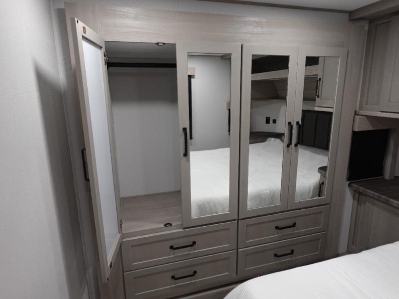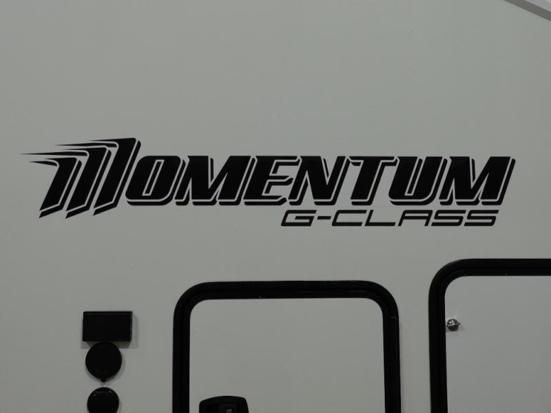 Are you looking for adventure and fun? The Momentum G-Class toy hauler by Grand Design will help you find it! You can explore during any season you choose with the Insulation Package that includes a heated and enclosed underbelly with suspended tanks, a high-capacity furnace, a moisture barrier floor enclosure, and cabinet-mounted heat ducts. Each model includes a fuel station with an interior and exterior gauge, a dovetail rear rend, and 2,500-LB tie-downs anchored into the chassis. Throughout the Momentum G-Class interior, you'll enjoy many comfortable features like large panoramic windows, a shower skylight, USB chargers in the bedroom, and residential cabinetry.