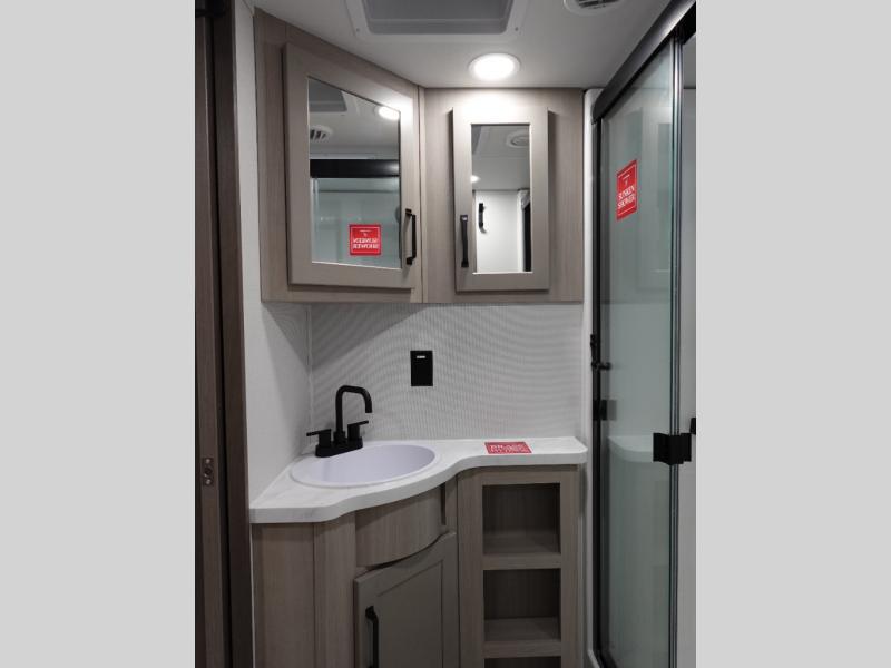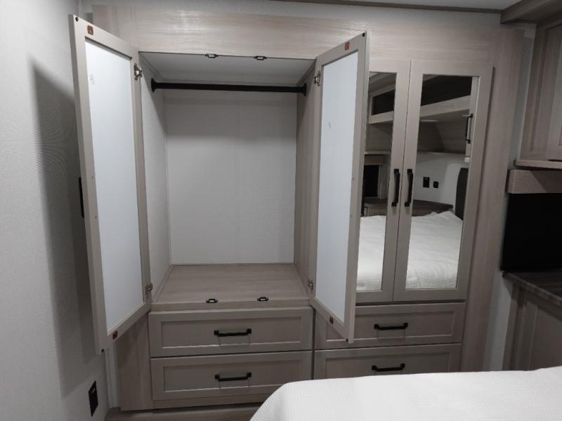 Are you looking for adventure and fun? The Momentum G-Class toy hauler by Grand Design will help you find it! You can explore during any season you choose with the Insulation Package that includes a heated and enclosed underbelly with suspended tanks, a high-capacity furnace, a moisture barrier floor enclosure, and cabinet-mounted heat ducts. Each model includes a fuel station with an interior and exterior gauge, a dovetail rear rend, and 2,500-LB tie-downs anchored into the chassis. Throughout the Momentum G-Class interior, you'll enjoy many comfortable features like large panoramic windows, a shower skylight, USB chargers in the bedroom, and residential cabinetry.