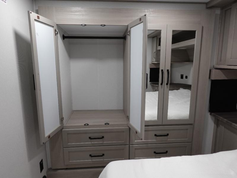 Are you looking for adventure and fun? The Momentum G-Class toy hauler by Grand Design will help you find it! You can explore during any season you choose with the Insulation Package that includes a heated and enclosed underbelly with suspended tanks, a high-capacity furnace, a moisture barrier floor enclosure, and cabinet-mounted heat ducts. Each model includes a fuel station with an interior and exterior gauge, a dovetail rear rend, and 2,500-LB tie-downs anchored into the chassis. Throughout the Momentum G-Class interior, you'll enjoy many comfortable features like large panoramic windows, a shower skylight, USB chargers in the bedroom, and residential cabinetry.