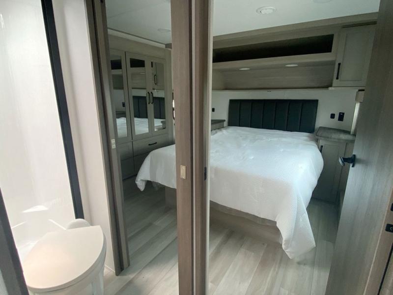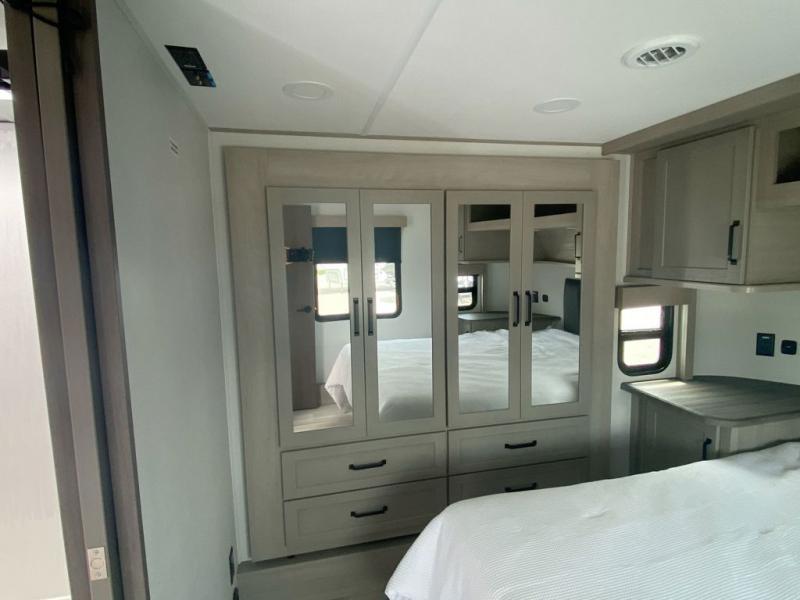 Are you looking for adventure and fun? The Momentum G-Class toy hauler by Grand Design will help you find it! You can explore during any season you choose with the Insulation Package that includes a heated and enclosed underbelly with suspended tanks, a high-capacity furnace, a moisture barrier floor enclosure, and cabinet-mounted heat ducts. Each model includes a high capacity water pump, a dovetail rear end, and 2,500-LB tie-downs anchored into the chassis. Throughout the Momentum G-Class interior, you'll enjoy many comfortable features like large panoramic windows, a shower skylight, USB chargers in the bedroom, and residential cabinetry.