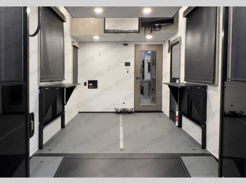 Spend your days at the campground kicking up mud with this toy hauler in tow! once you've unloaded your toys from the ramp door, you can use the 60 gallon fuel station to fill up and head out on a trail! The overhead bed provides a place for guests to sleep, and there is an optional Liftsuite System for more sleeping space if needed. There is even an optional half bath here if you choose to make this space more accommodating. Head to the middle kitchen and living area where you'll enjoy generous counter space to prep meals, a spacious 20 cu. ft. refrigerator, an L-shaped sofa with recline, plus a hybrid desk/dinette that will serve as a dining or working space. The dual entry bath creates a front master bedroom you are sure to love. There is a queen bed with an optional king bed, plenty of overhead storage, and a wardrobe slide to keep your things organized.
