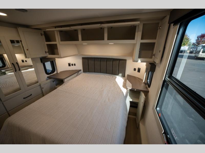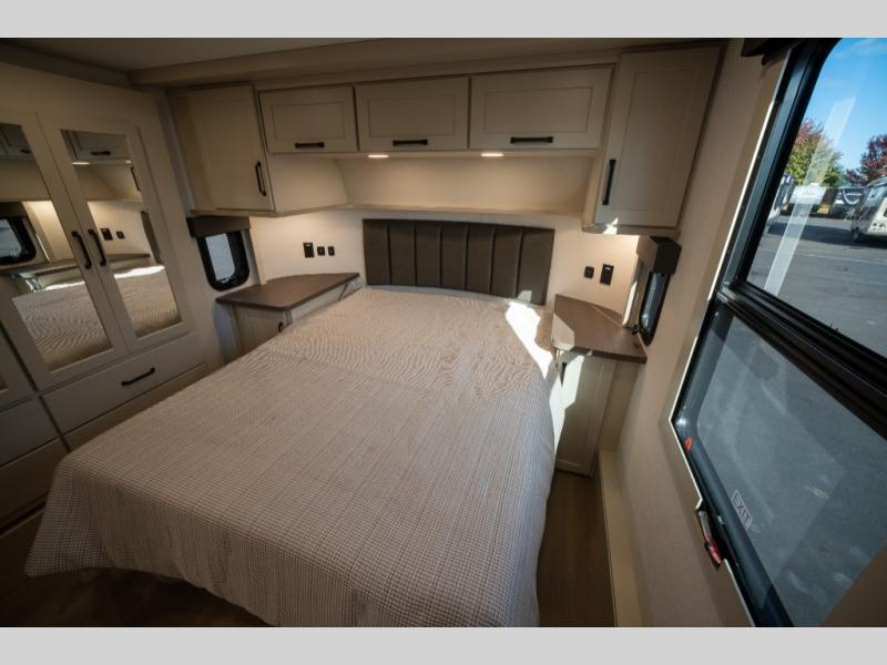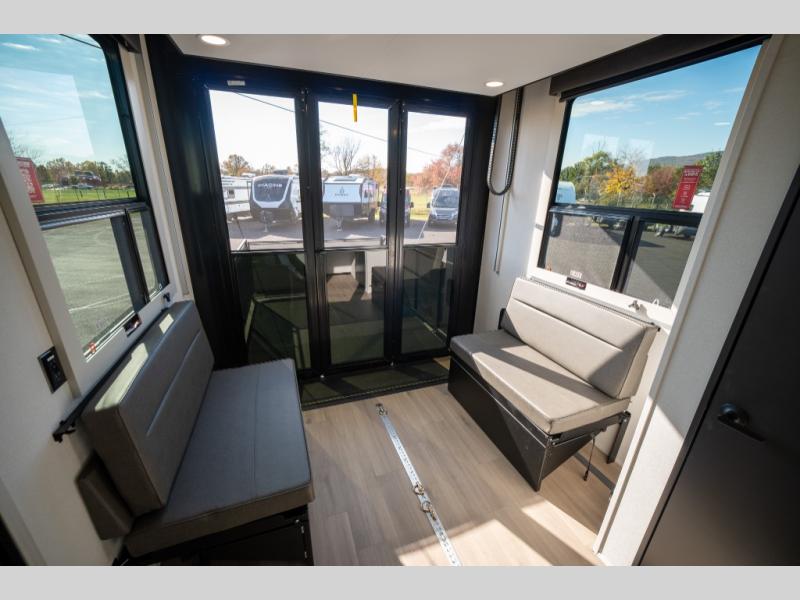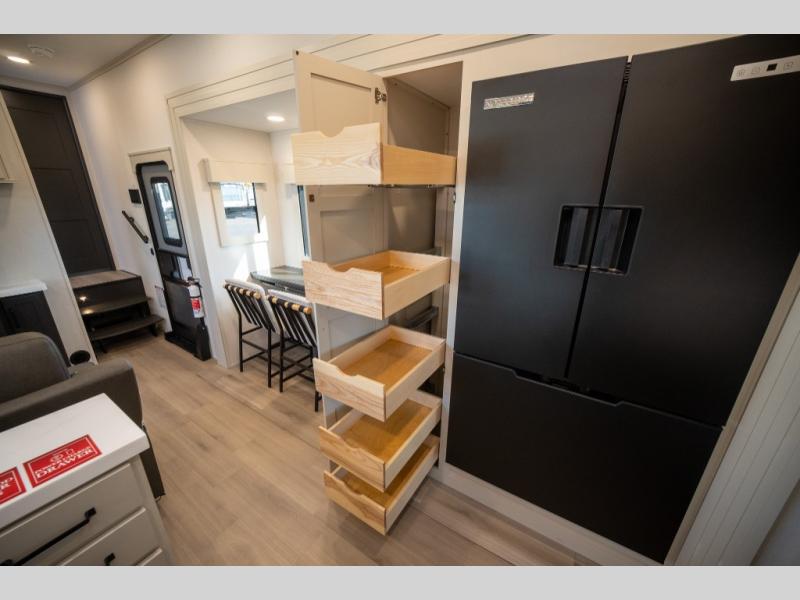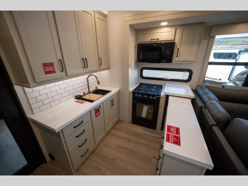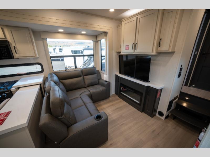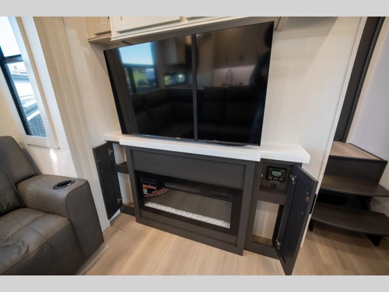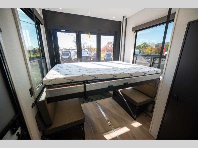 With any Momentum M-Class toy hauler by Grand Design, you will enjoy luxury at every turn! They have been constructed to a superior standard with a thermal roof design, triple insulated main floor and garage floor, and a Rail-Tite underbelly seal that will allow you to camp in all elements. Each model also features an 8' 5" wide body chassis with a wide rail design, no wheel wheels, and a dovetail entry for easier loading. The Stealth A/C system provides maximum cooling power, and the CRE3000 suspension system means you can enjoy a smooth tow each time. You will love the luxurious interior with a professional grade stainless steel cooktop, interior color changing LED accent lighting, a fiberglass shower with a glass door, and solid surface countertops.