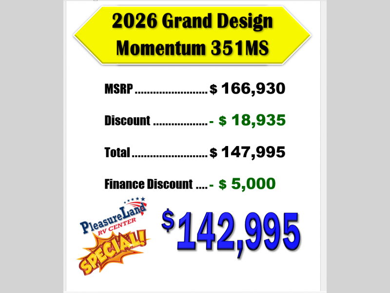 New 2026 Grand Design Momentum M-Class 351MS Toy Hauler Fifth Wheel