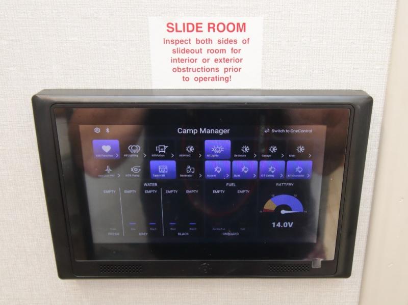 Built with durability and comfort in mind, the Momentum M-Class features a thermal roof design, triple insulated main and garage floors, and a Rail-Tite underbelly seal for all-season camping. Towing is smooth thanks to the CRE3000 suspension system, and loading toys is simple with the 8’5” wide body chassis, dovetail entry, and no wheel wells. Plus, the Stealth A/C system keeps the interior cool, while LED accent lighting adds a touch of modern luxury.
