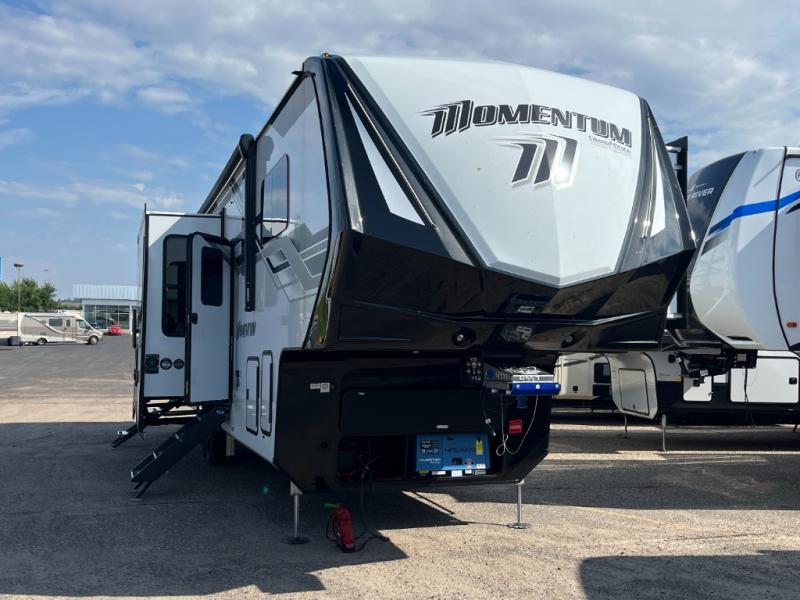 With any Momentum M-Class toy hauler by Grand Design, you will enjoy luxury at every turn! They have been constructed to a superior standard with a thermal roof design, triple insulated main floor and garage floor, and a Rail-Tite underbelly seal that will allow you to camp in all elements. Each model also features an 8' 5" wide body chassis with a wide rail design, no wheel wheels, and a dovetail entry for easier loading. The Stealth A/C system provides maximum cooling power, and the CRE3000 suspension system means you can enjoy a smooth tow each time. You will love the luxurious interior with a professional grade stainless steel cooktop, interior color changing LED accent lighting, a fiberglass shower with a glass door, and solid surface countertops.