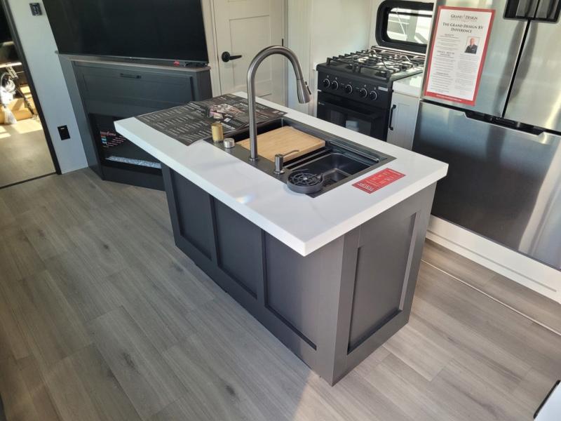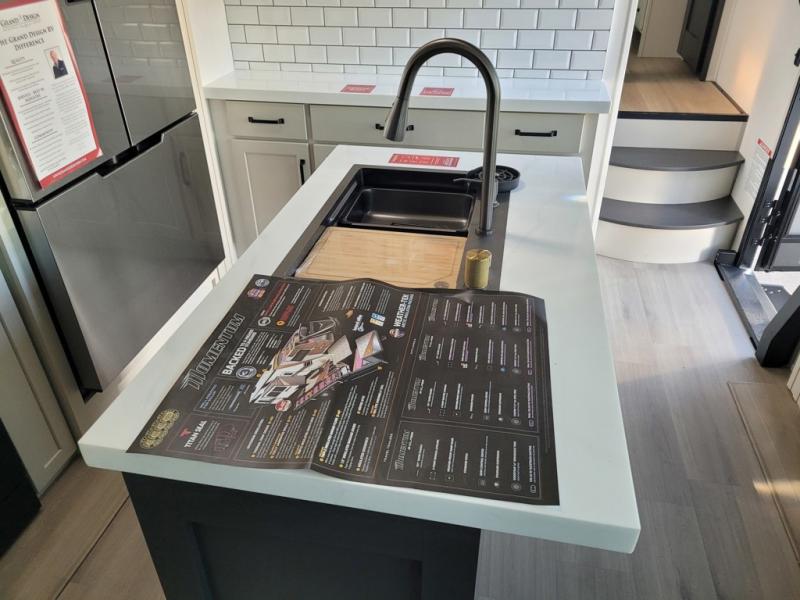 With any Momentum M-Class toy hauler by Grand Design, you will enjoy luxury at every turn! They have been constructed to a superior standard with a thermal roof design, triple insulated main floor and garage floor, and a Rail-Tite underbelly seal that will allow you to camp in all elements. Each model also features an 8' 5" wide body chassis with a wide rail design, no wheel wheels, and a dovetail entry for easier loading. The Stealth A/C system provides maximum cooling power, and the CRE3000 suspension system means you can enjoy a smooth tow each time. You will love the luxurious interior with a professional grade stainless steel cooktop, interior color changing LED accent lighting, a fiberglass shower with a glass door, and solid surface countertops.