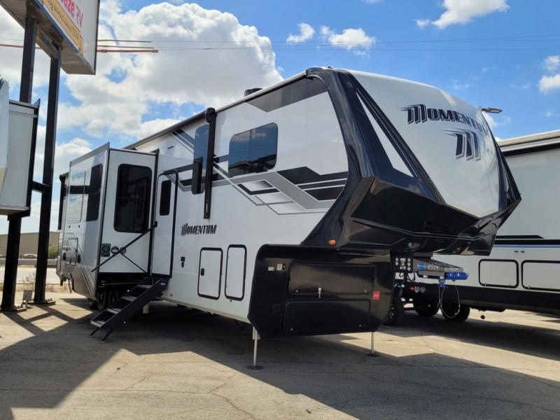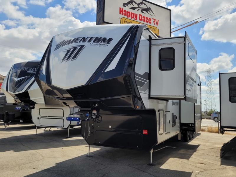 With any Momentum M-Class toy hauler by Grand Design, you will enjoy luxury at every turn! They have been constructed to a superior standard with a thermal roof design, triple insulated main floor and garage floor, and a Rail-Tite underbelly seal that will allow you to camp in all elements. Each model also features an 8' 5" wide body chassis with a wide rail design, no wheel wheels, and a dovetail entry for easier loading. The Stealth A/C system provides maximum cooling power, and the CRE3000 suspension system means you can enjoy a smooth tow each time. You will love the luxurious interior with a professional grade stainless steel cooktop, interior color changing LED accent lighting, a fiberglass shower with a glass door, and solid surface countertops.