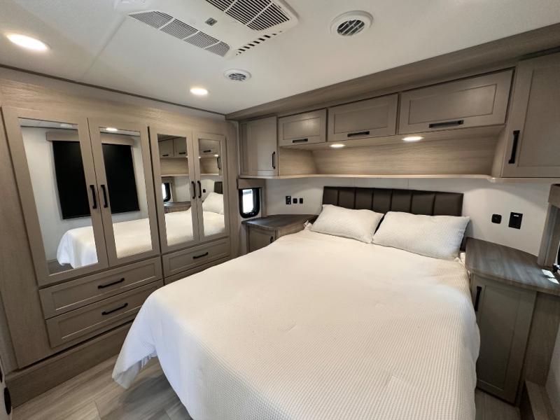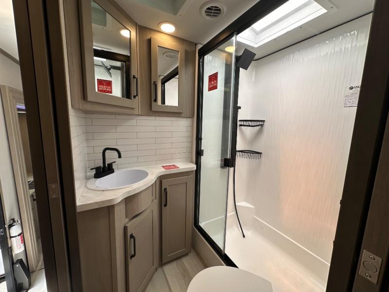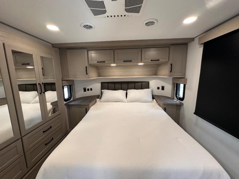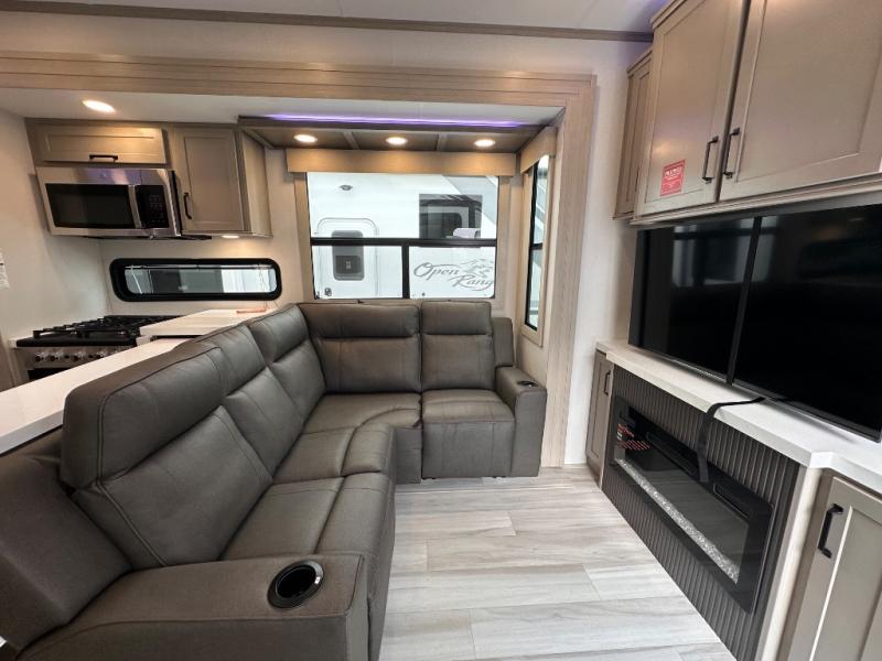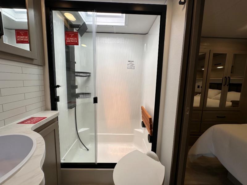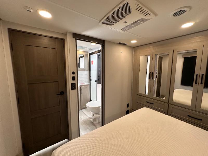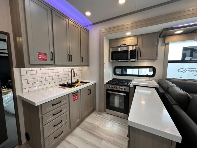 With any Momentum M-Class toy hauler by Grand Design, you will enjoy luxury at every turn! They have been constructed to a superior standard with a thermal roof design, triple insulated main floor and garage floor, and a Rail-Tite underbelly seal that will allow you to camp in all elements. Each model also features an 8' 5" wide body chassis with a wide rail design, no wheel wheels, and a dovetail entry for easier loading. The Stealth A/C system provides maximum cooling power, and the CRE3000 suspension system means you can enjoy a smooth tow each time. You will love the luxurious interior with a professional grade stainless steel cooktop, interior color changing LED accent lighting, a fiberglass shower with a glass door, and solid surface countertops.
