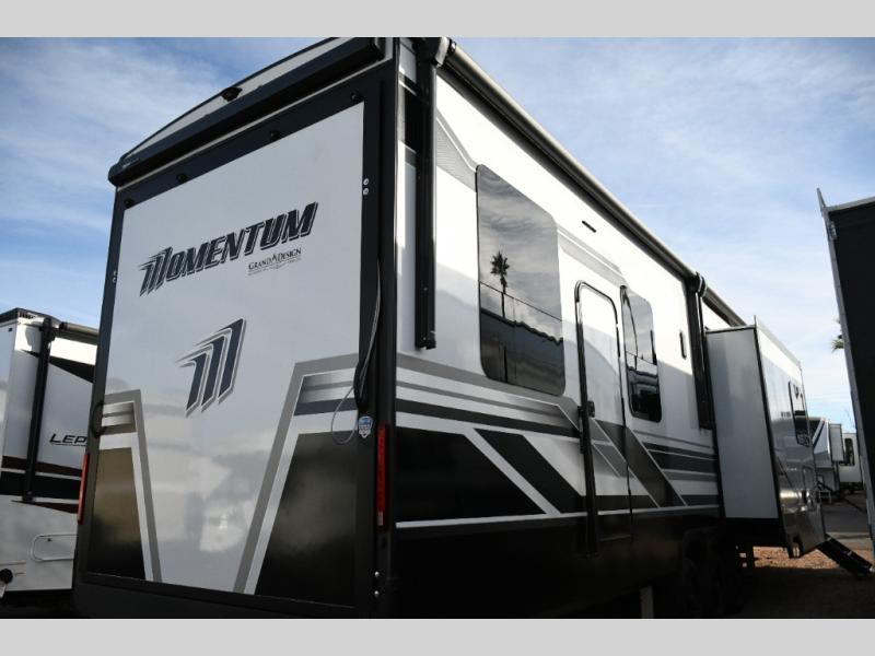 Adventure meets luxury in the New 2026 Grand Design Momentum 392M, a high-performance fifth wheel toy hauler designed for those who want to bring their toys—and their comforts—along for the ride. With a massive 17' separate garage, upscale residential finishes, and true four-season capability, this Momentum is built for extreme living without compromise.