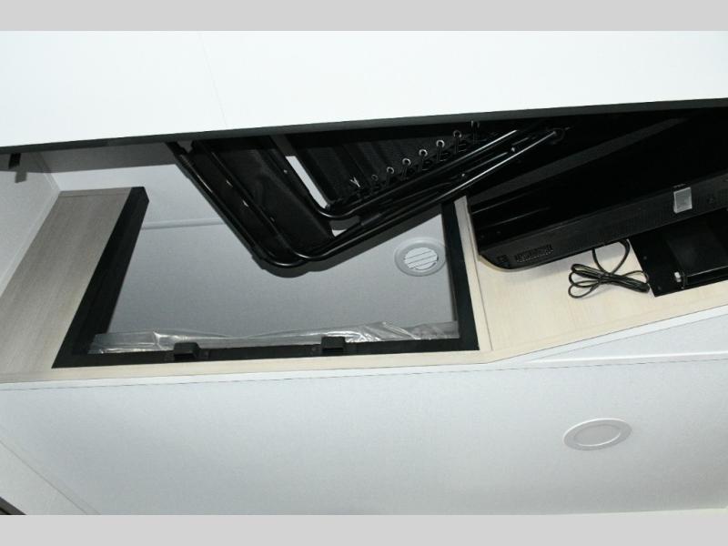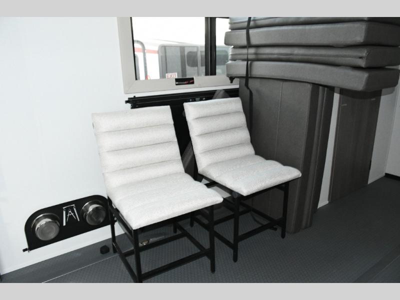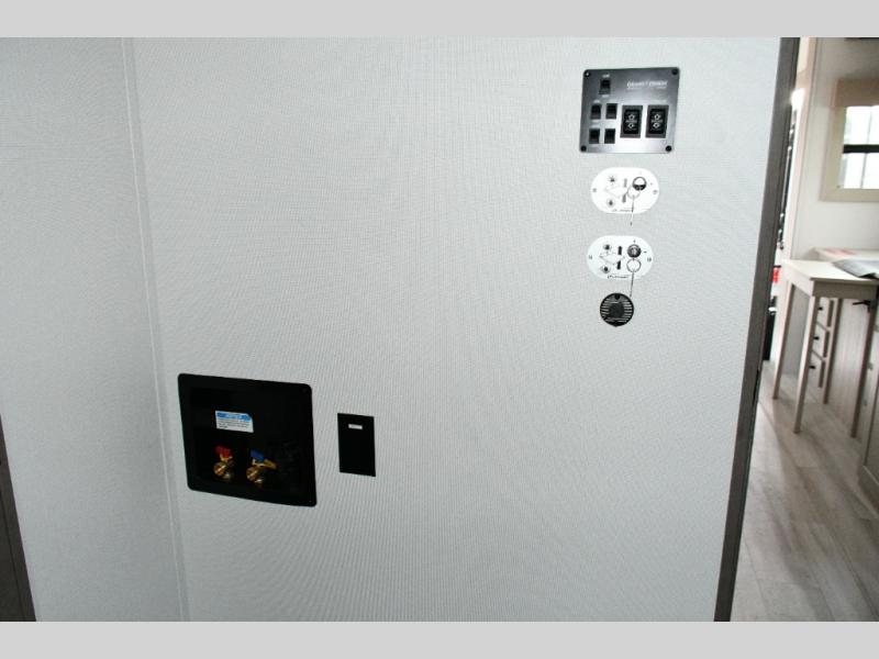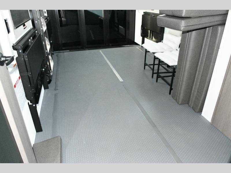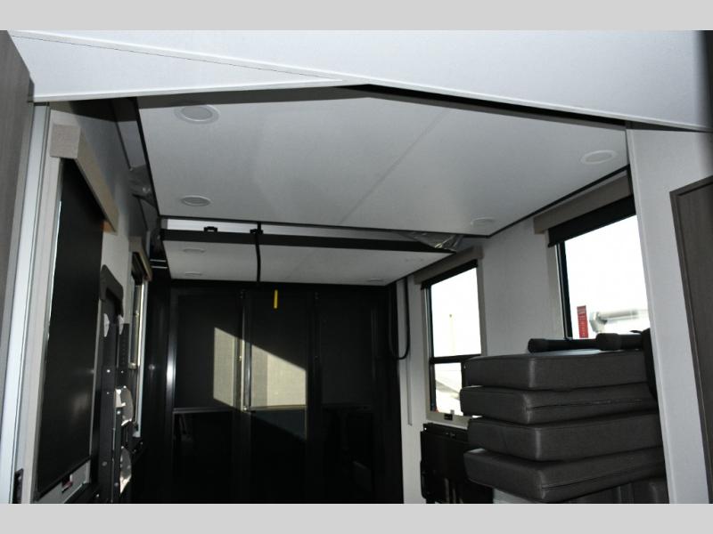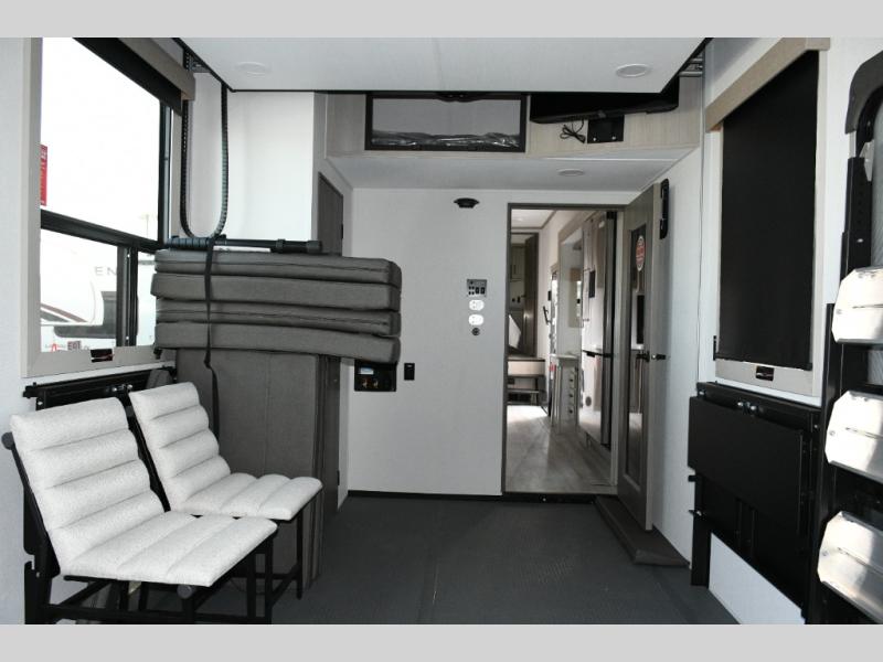 The dedicated garage space is ready for action with an adjustable tie-down system, triple-insulated garage floor, two LiftSuite Systems, and an overhead loft bed for additional sleeping or storage. You’ll also appreciate washer and dryer prep, an optional half bath, and a flip-up pet dish, making this toy hauler as functional as it is pet-friendly. The ramp door converts to a patio, creating the ultimate outdoor hangout once the toys are unloaded.