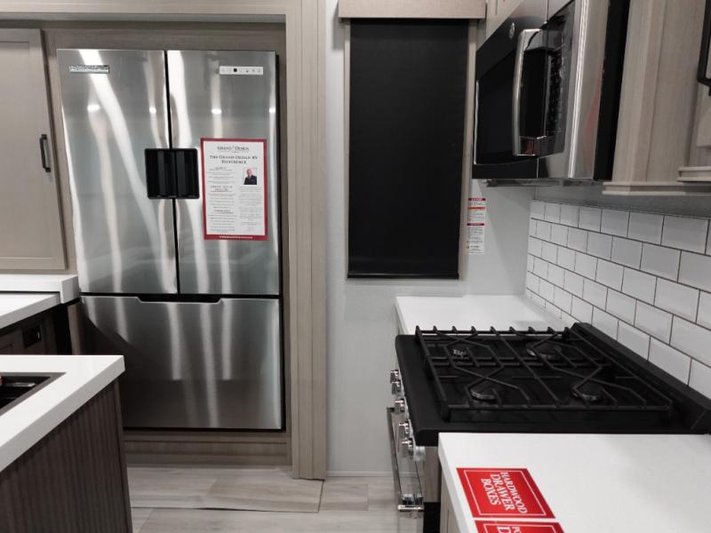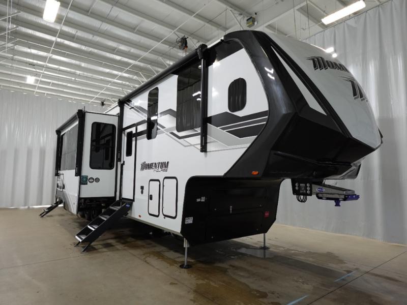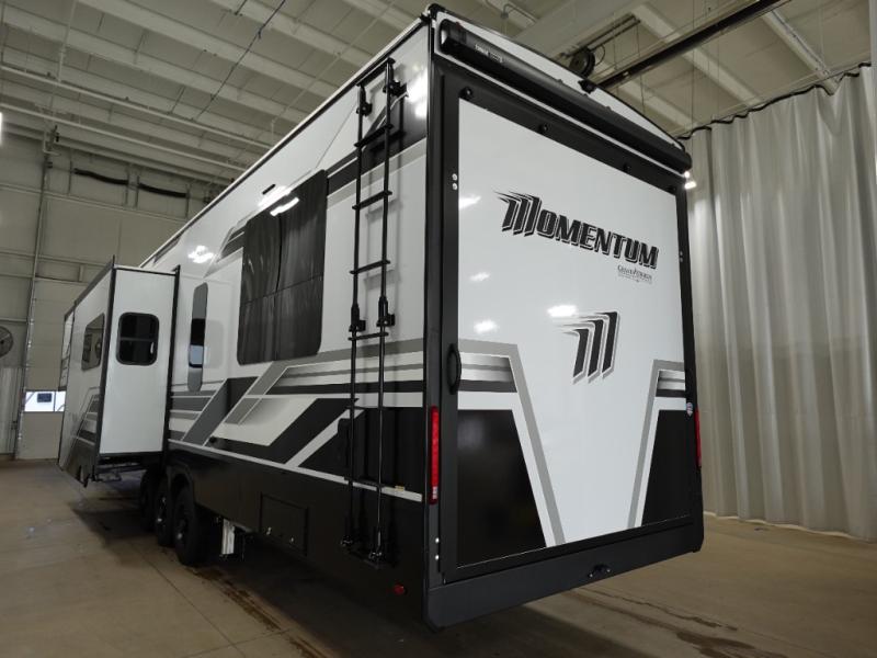 With any Momentum M-Class toy hauler by Grand Design, you will enjoy luxury at every turn! They have been constructed to a superior standard with a thermal roof design, triple insulated main floor and garage floor, and a Rail-Tite underbelly seal that will allow you to camp in all elements. Each model also features an 8' 5" wide body chassis with a wide rail design, no wheel wheels, and a dovetail entry for easier loading. The Stealth A/C system provides maximum cooling power, and the CRE3000 suspension system means you can enjoy a smooth tow each time. You will love the luxurious interior with a professional grade stainless steel cooktop, interior color changing LED accent lighting, a fiberglass shower with a glass door, and solid surface countertops.