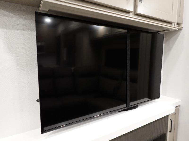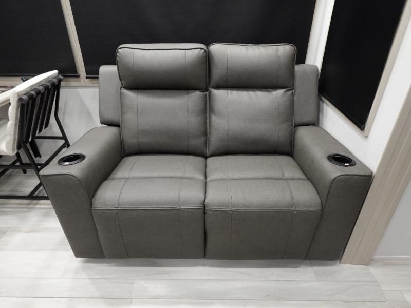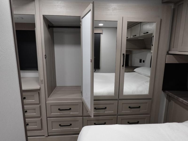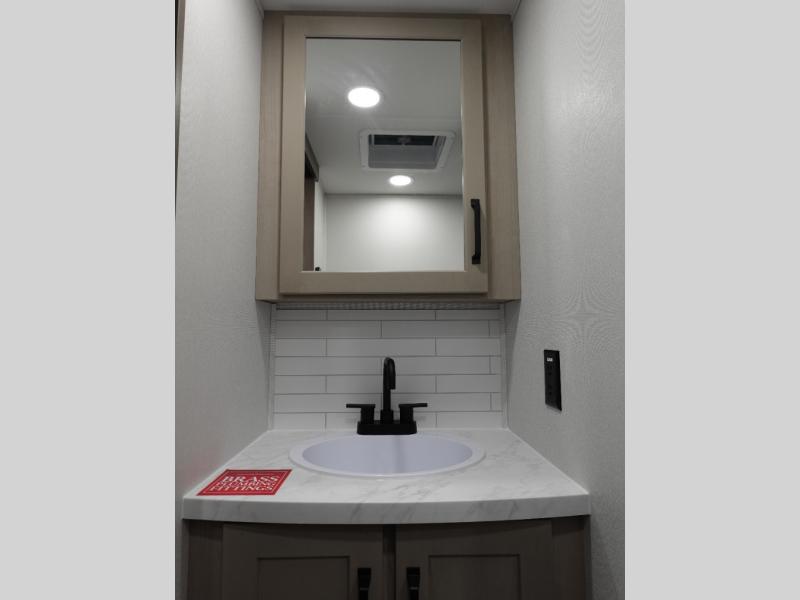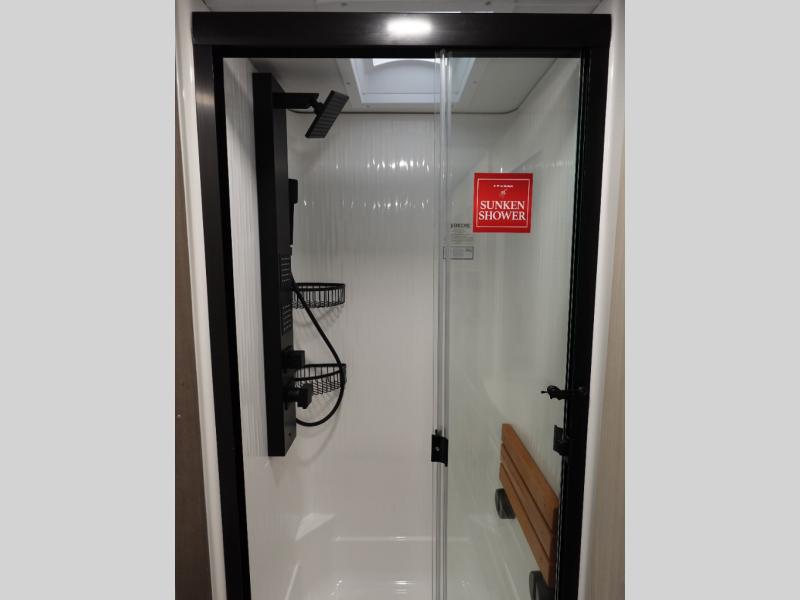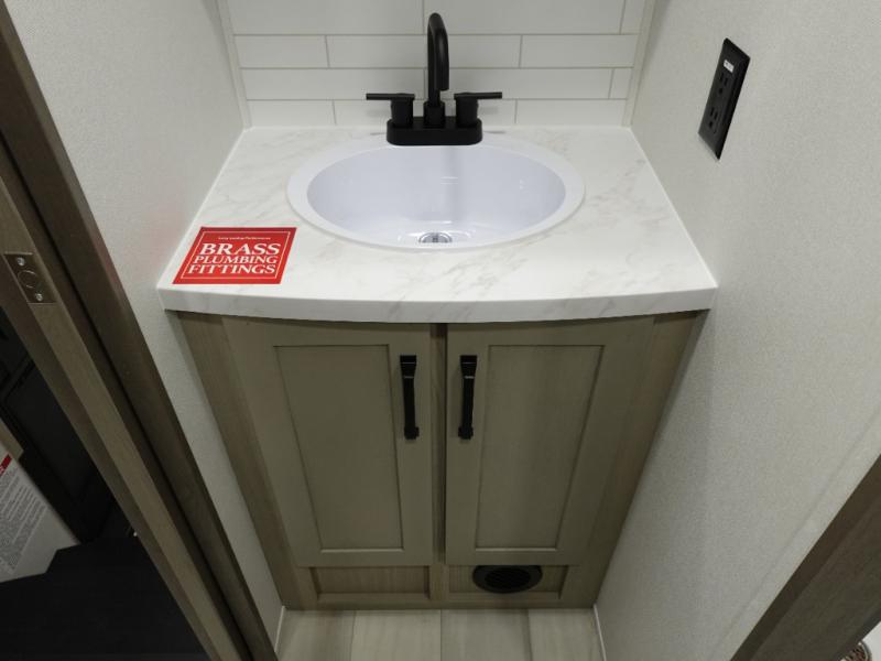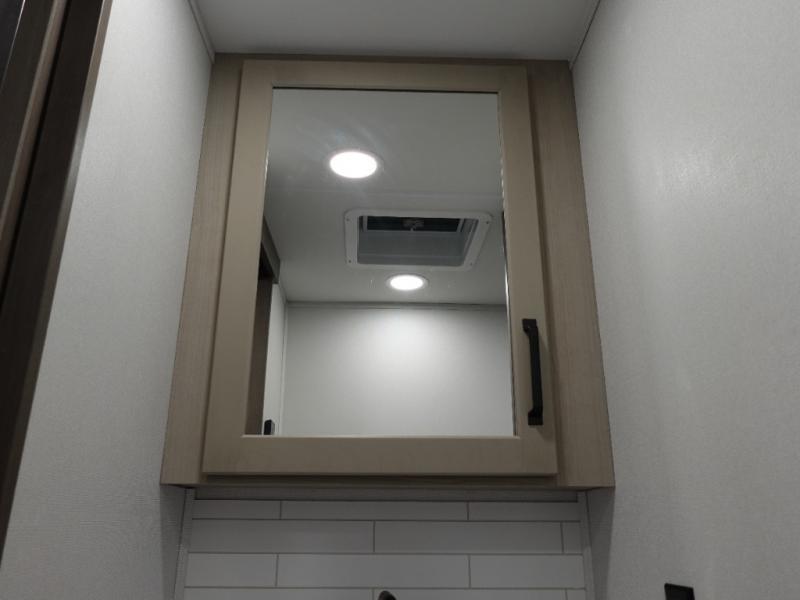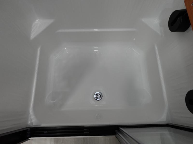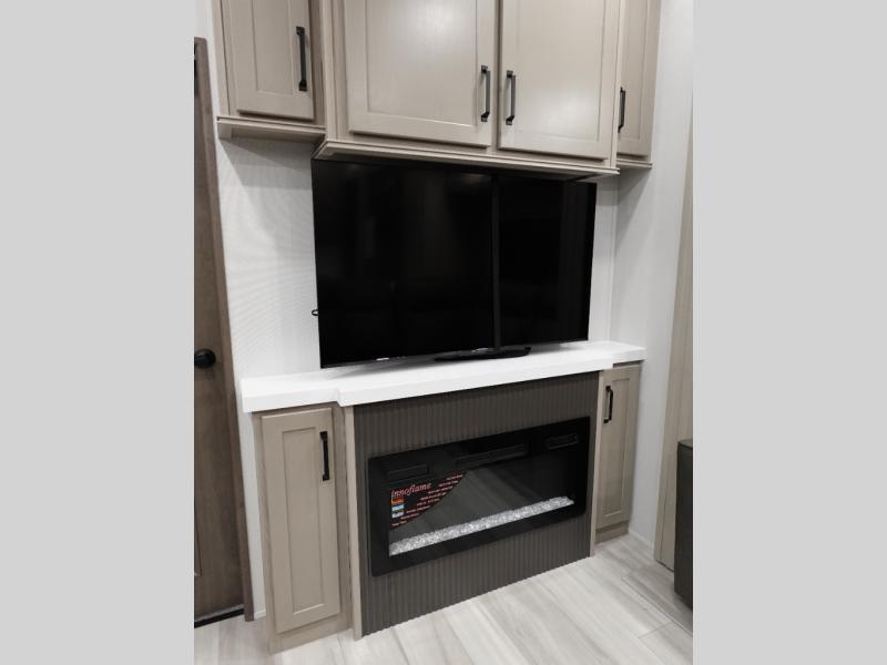 You want a toy hauler to carry your toys to the trails, and include many at-home comforts, and that's just what this unit delivers. A 14' separate garage includes an adjustable tie-down system, a half bath, plus washer and dryer prep. There is an overhead loft bed and an L-shaped sofa with recline in the main living area that offers sleeping space as well. Everyone can watch a movie on the LED TV with a fireplace below while sitting on the sofa, in the theatre seats, or while at the free standing dinette with four chairs. The chef will have upgraded appliances to make meals for everyone, an L-shaped countertop with a kitchen sink, and a USB charging outlet. You will love the shower with seat in the full bathroom with two space savings sliding doors that lead into the hallway, and into the front bedroom where you will have a walk-around queen bed, a slide out wardrobe and more USB charging outlets.