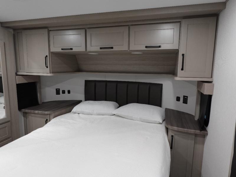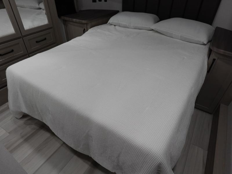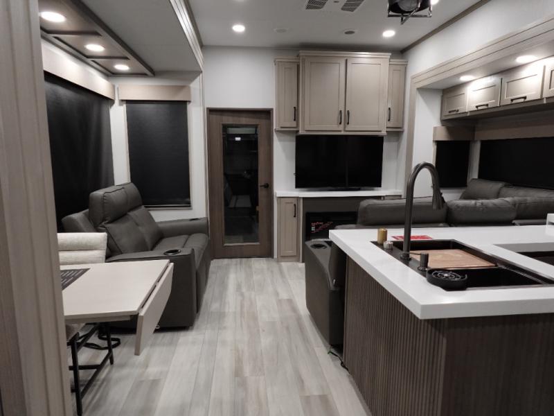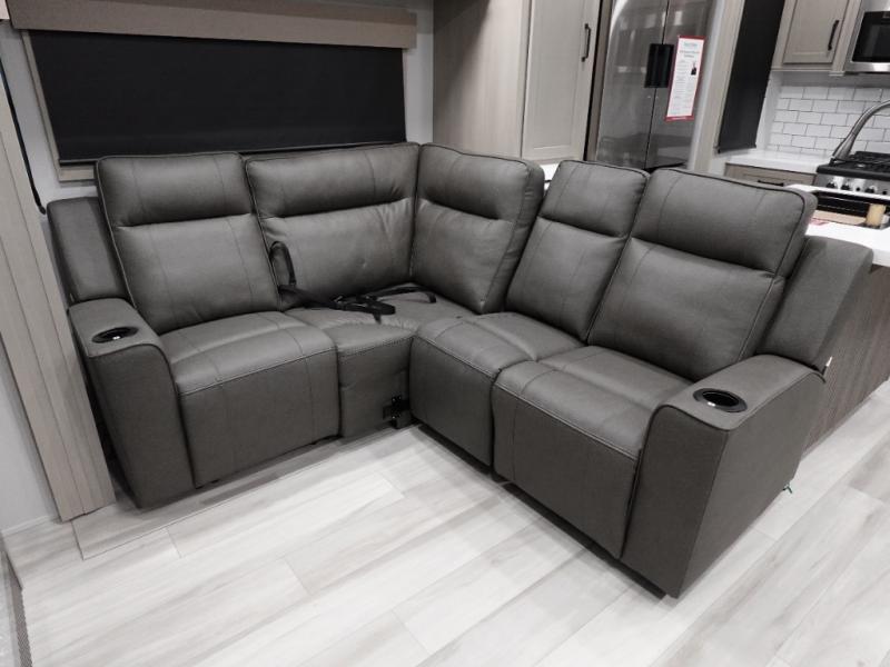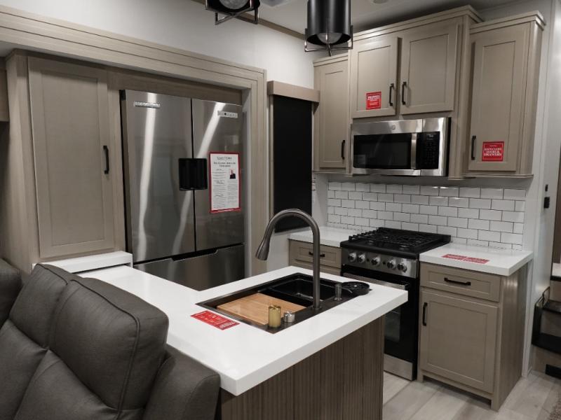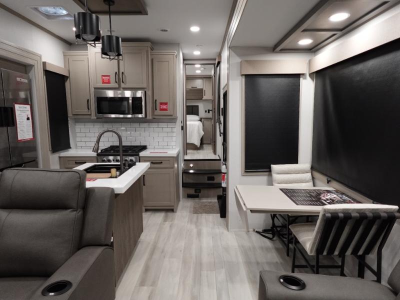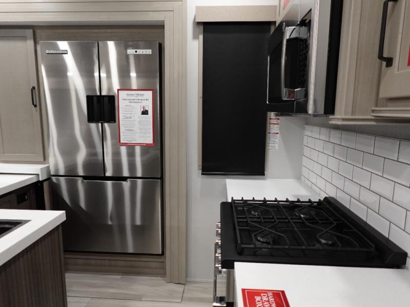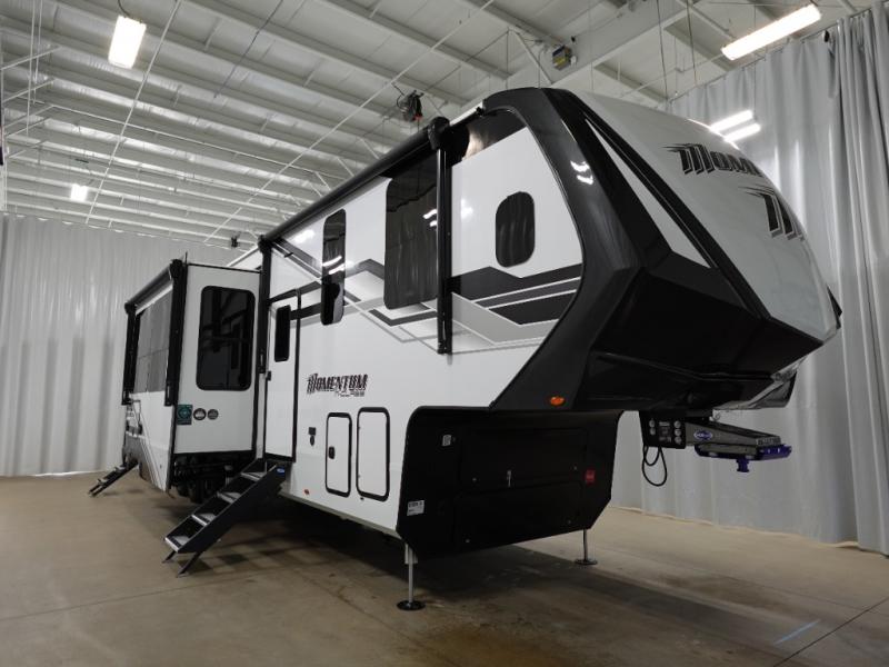 With any Momentum M-Class toy hauler by Grand Design, you will enjoy luxury at every turn! They have been constructed to a superior standard with a thermal roof design, triple insulated main floor and garage floor, and a Rail-Tite underbelly seal that will allow you to camp in all elements. Each model also features an 8' 5" wide body chassis with a wide rail design, no wheel wheels, and a dovetail entry for easier loading. The Stealth A/C system provides maximum cooling power, and the CRE3000 suspension system means you can enjoy a smooth tow each time. You will love the luxurious interior with a professional grade stainless steel cooktop, interior color changing LED accent lighting, a fiberglass shower with a glass door, and solid surface countertops.