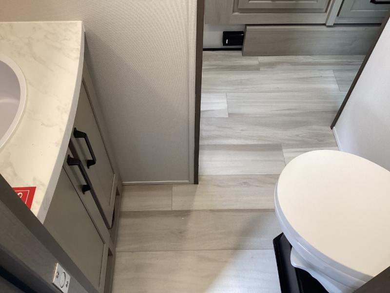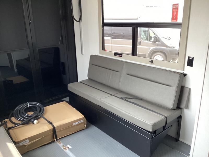Secure your toys with the adjustable tie-down system, and convert the space into a guest suite with options like the LifeSuite System, half bath, or washer/dryer prep. Overhead loft bed adds even more flexibility for sleeping or storage. -