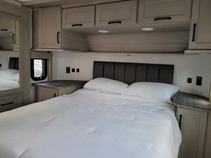 With any Momentum M-Class toy hauler by Grand Design, you will enjoy luxury at every turn! They have been constructed to a superior standard with a thermal roof design, triple insulated main floor and garage floor, and a Rail-Tite underbelly seal that will allow you to camp in all elements. Each model also features an 8' 5" wide body chassis with a wide rail design, no wheel wheels, and a dovetail entry for easier loading. The Stealth A/C system provides maximum cooling power, and the CRE3000 suspension system means you can enjoy a smooth tow each time. You will love the luxurious interior with a professional grade stainless steel cooktop, interior color changing LED accent lighting, a fiberglass shower with a glass door, and solid surface countertops.