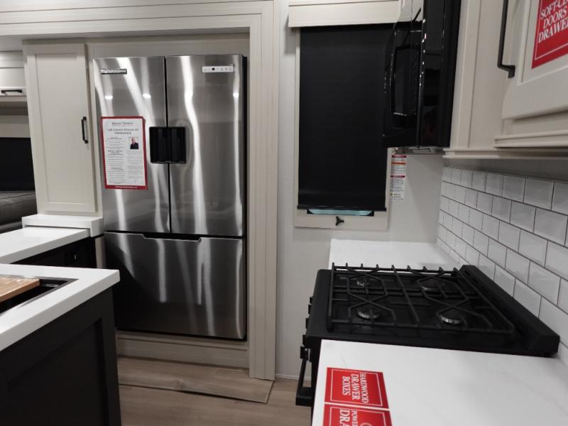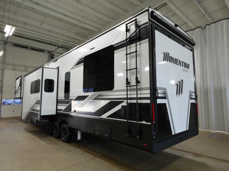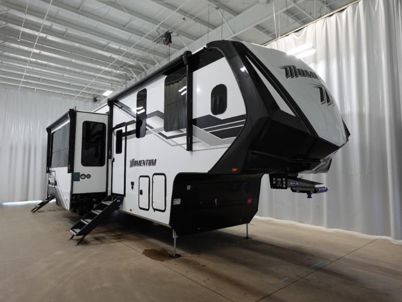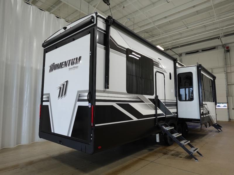 With any Momentum M-Class toy hauler by Grand Design, you will enjoy luxury at every turn! They have been constructed to a superior standard with a thermal roof design, triple insulated main floor and garage floor, and a Rail-Tite underbelly seal that will allow you to camp in all elements. Each model also features an 8' 5" wide body chassis with a wide rail design, no wheel wheels, and a dovetail entry for easier loading. The Stealth A/C system provides maximum cooling power, and the CRE3000 suspension system means you can enjoy a smooth tow each time. You will love the luxurious interior with a professional grade stainless steel cooktop, interior color changing LED accent lighting, a fiberglass shower with a glass door, and solid surface countertops.