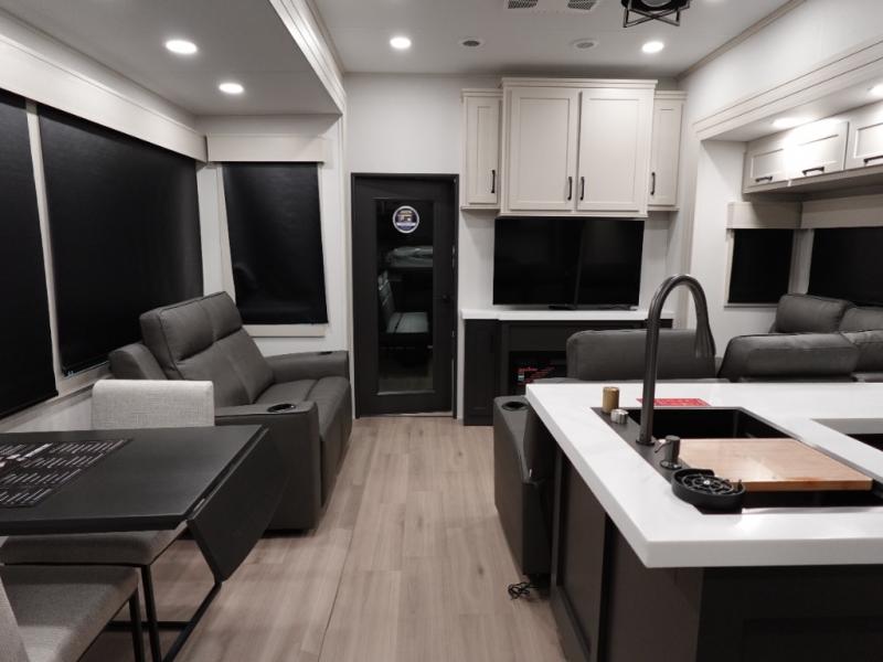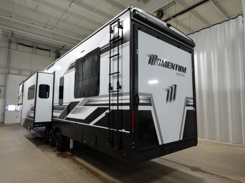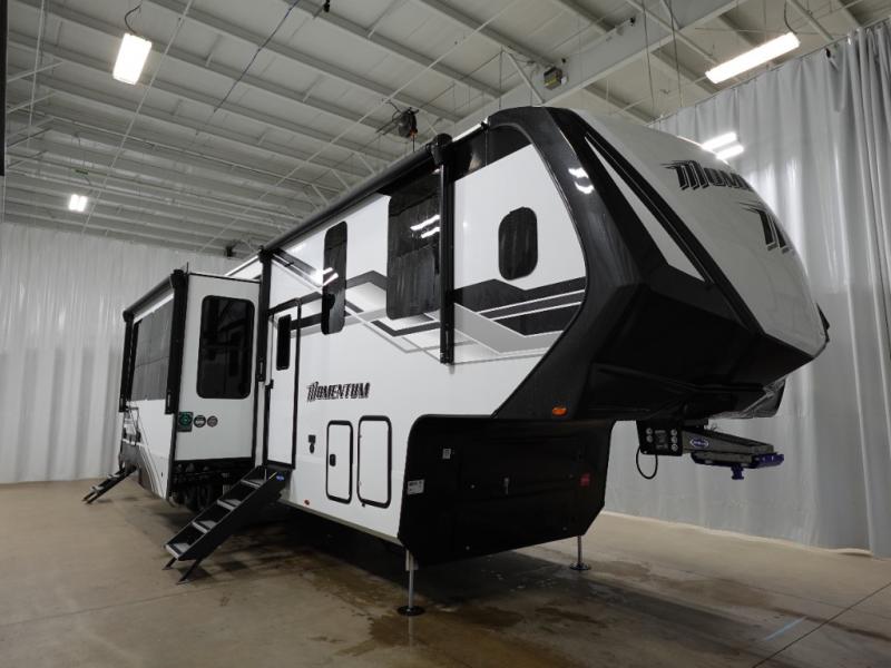 With any Momentum M-Class toy hauler by Grand Design, you will enjoy luxury at every turn! They have been constructed to a superior standard with a thermal roof design, triple insulated main floor and garage floor, and a Rail-Tite underbelly seal that will allow you to camp in all elements. Each model also features an 8' 5" wide body chassis with a wide rail design, no wheel wheels, and a dovetail entry for easier loading. The Stealth A/C system provides maximum cooling power, and the CRE3000 suspension system means you can enjoy a smooth tow each time. You will love the luxurious interior with a professional grade stainless steel cooktop, interior color changing LED accent lighting, a fiberglass shower with a glass door, and solid surface countertops.