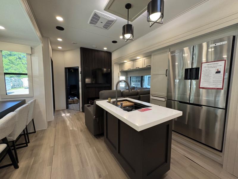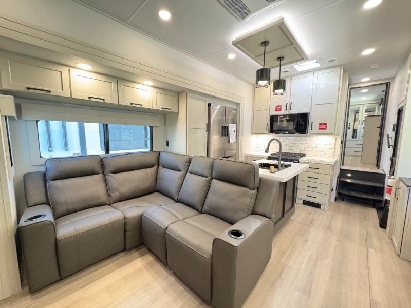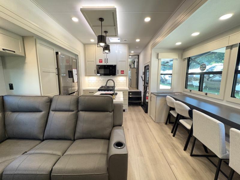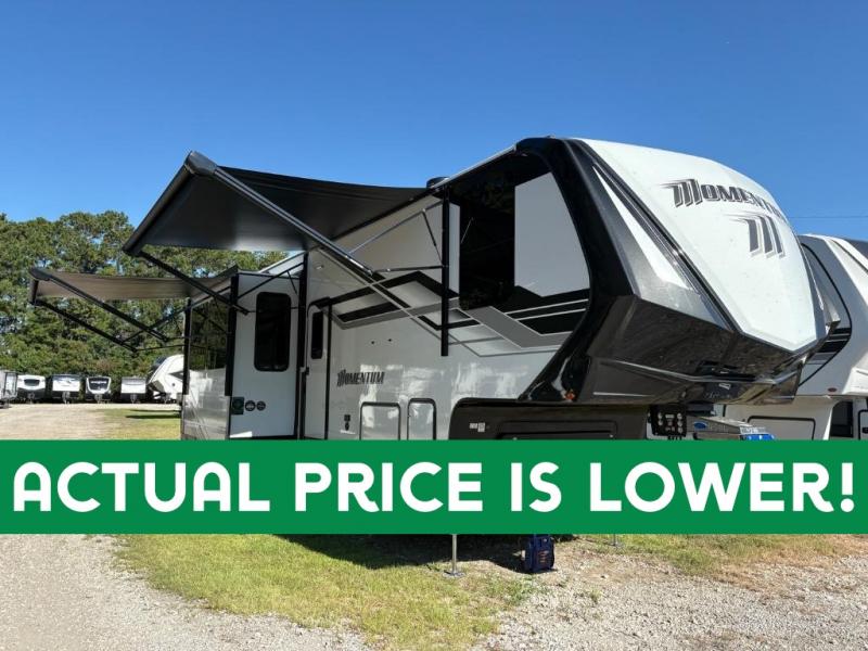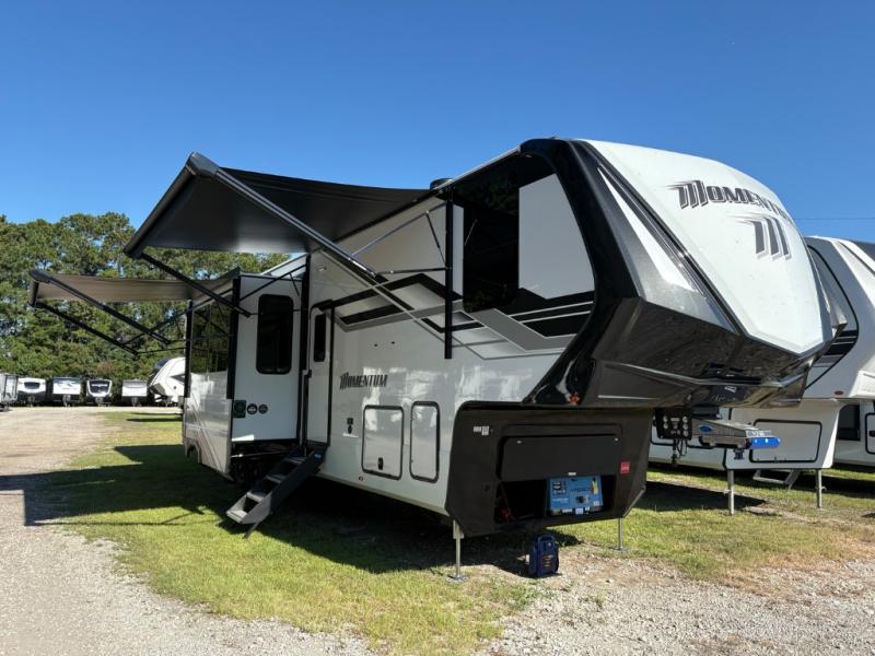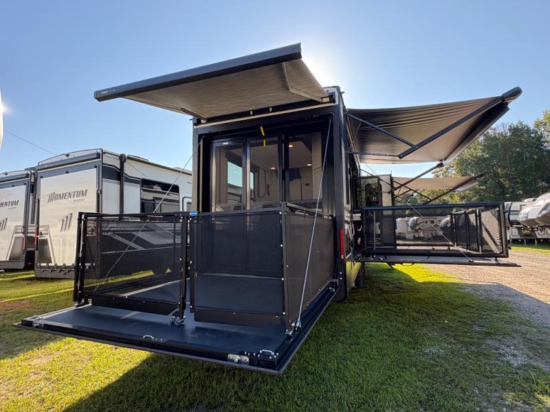 The Grand Design Momentum 399M combines residential comfort with extreme toy hauler capability. With three A/C units, a king bed, a fully equipped kitchen, and a 12' 6" garage, it’s perfect for both off-grid adventures and luxury living on the road.