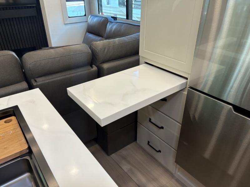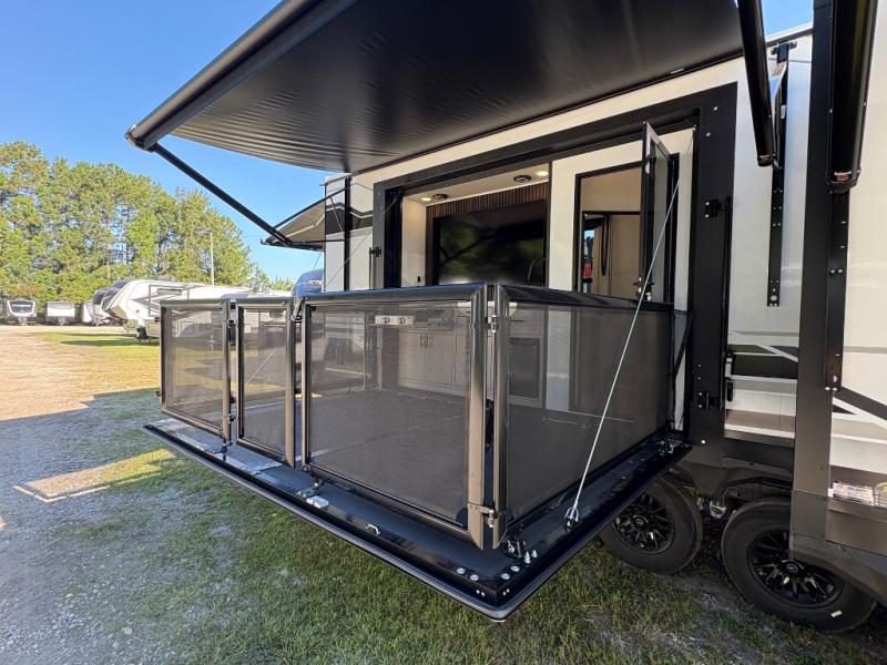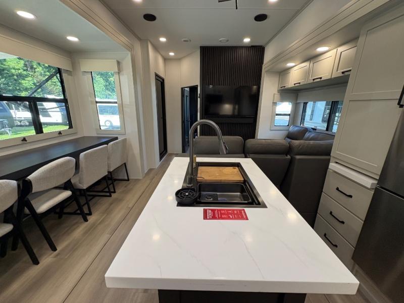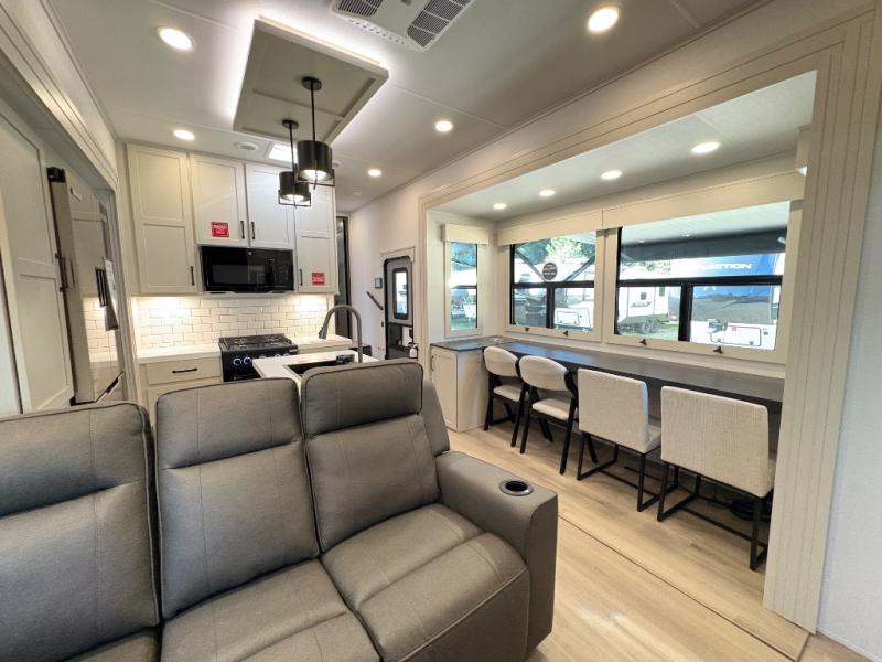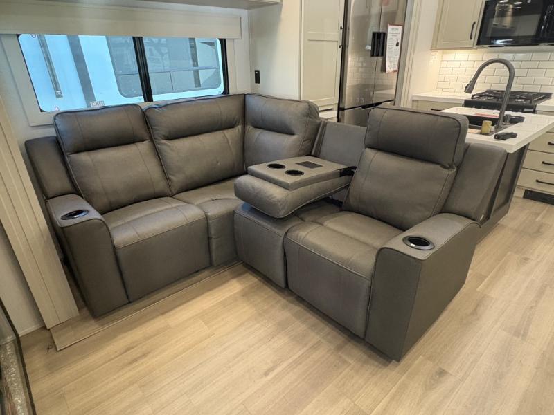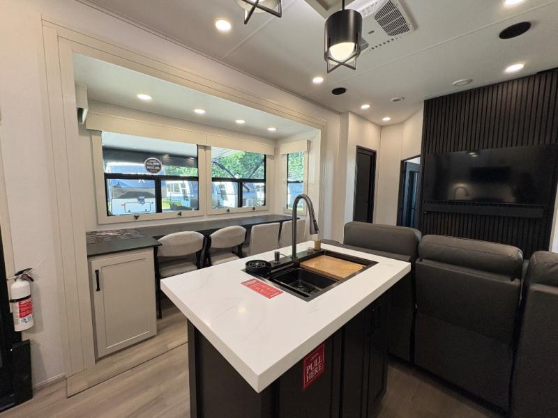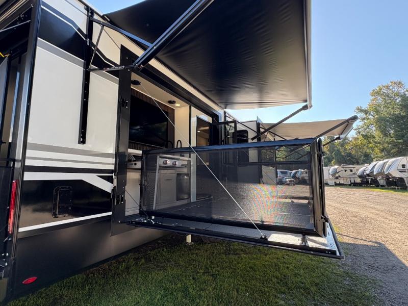 The Grand Design Momentum 399M combines residential comfort with extreme toy hauler capability. With three A/C units, a king bed, a fully equipped kitchen, and a 12' 6" garage, it’s perfect for both off-grid adventures and luxury living on the road.