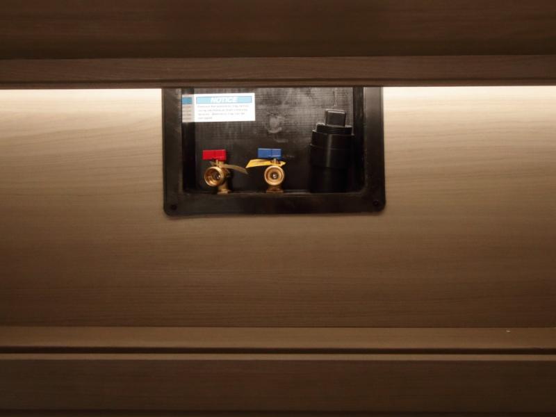 At the front of the coach, enjoy a queen bed slide-out (with optional king) for maximum floor space, plus a slide-top dresser with TV prep and a large front wardrobe that includes washer/dryer prep. The dual entry full bath offers convenient access from both the hallway and bedroom and features a fiberglass shower with a glass door for a residential touch.