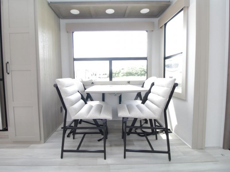 Step inside the main living area and you'll find an L-shaped reclining sofa perfectly positioned across from the entertainment center and fireplace. The free-standing dinette is ideal for meals, work, or game nights, while the U-shaped kitchen counter provides abundant space for food prep.
