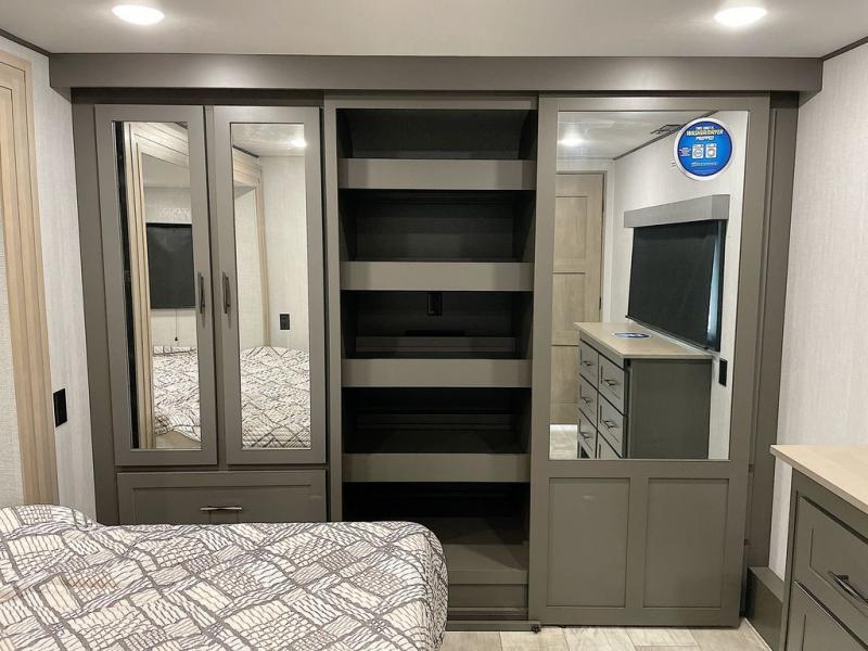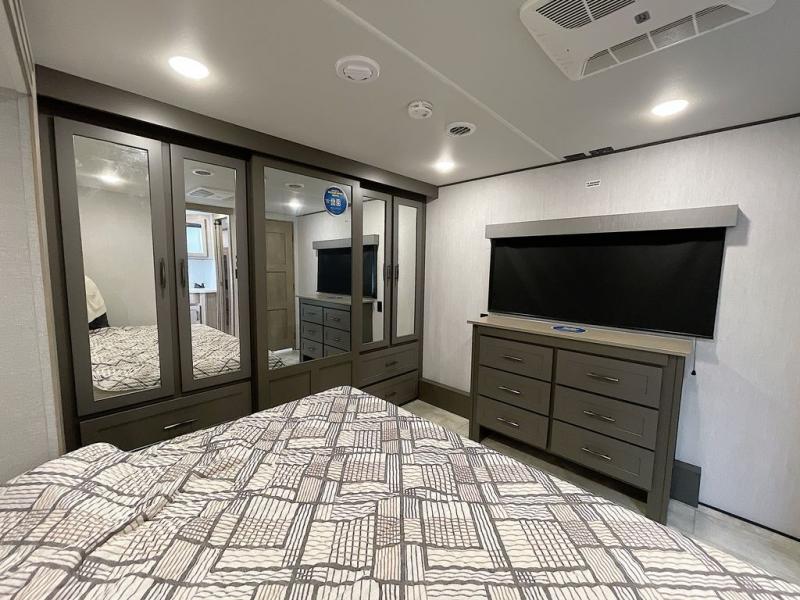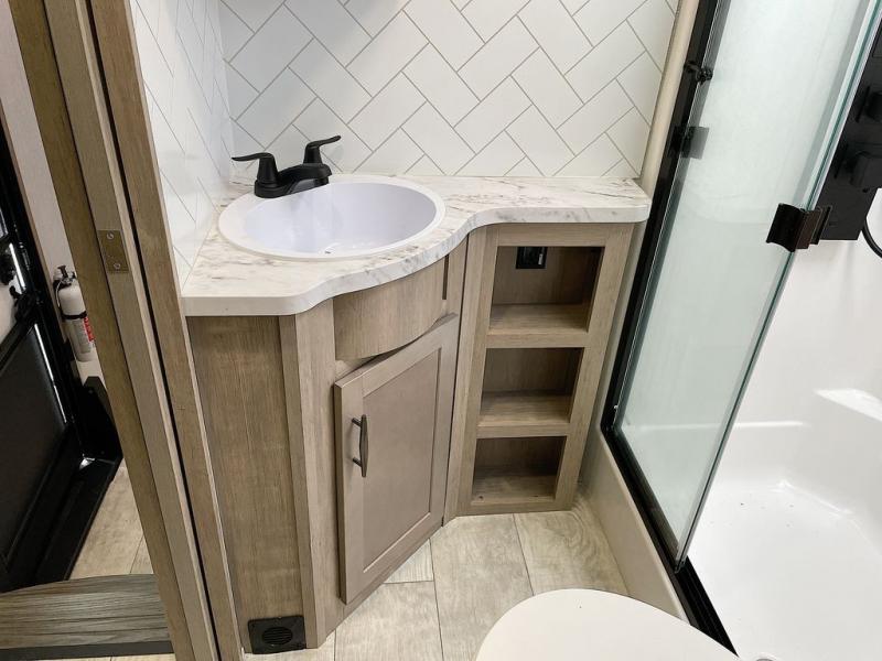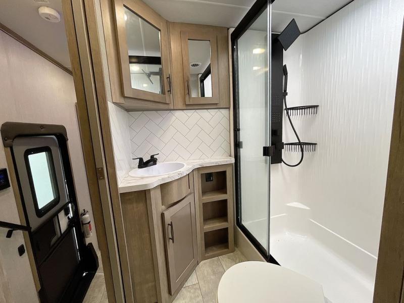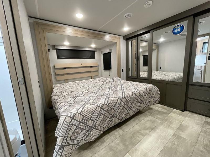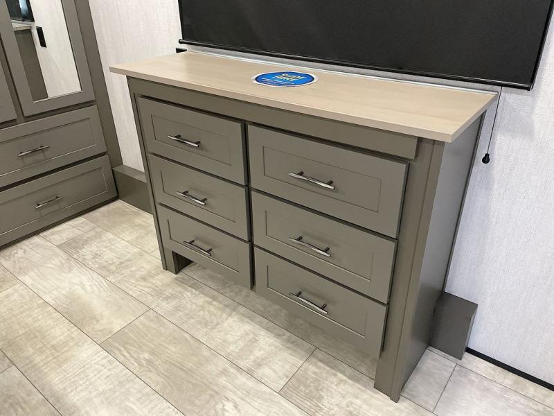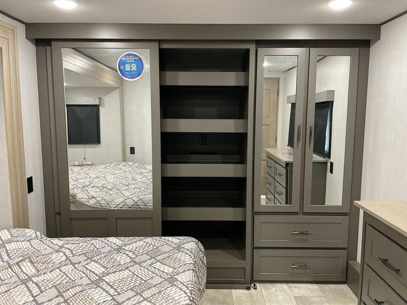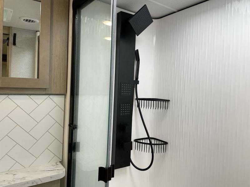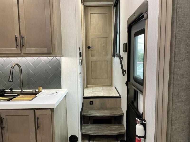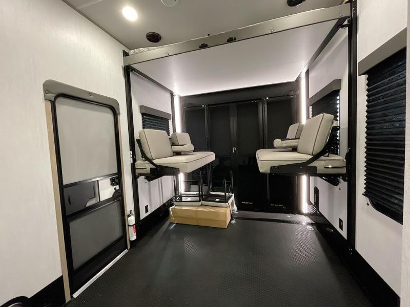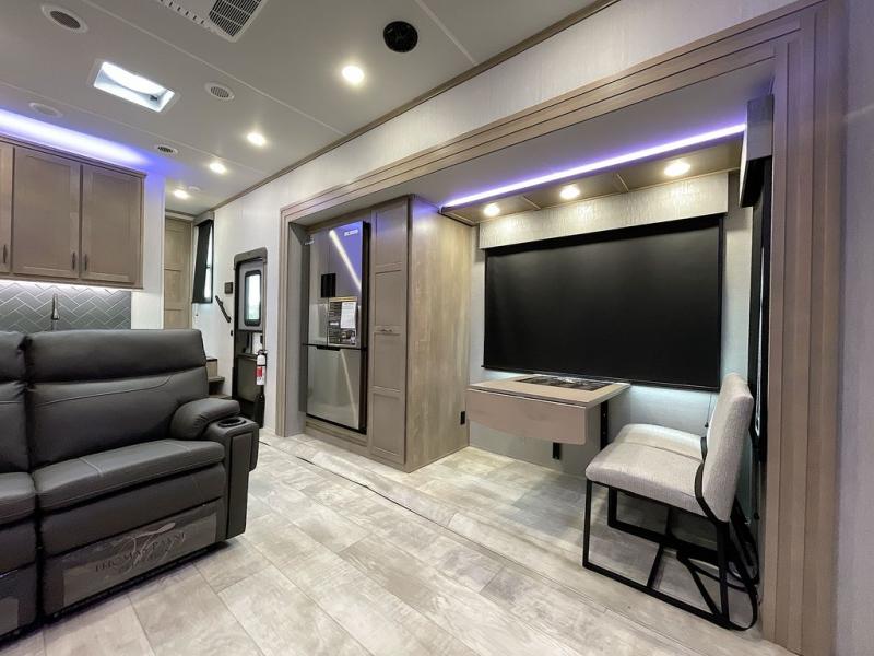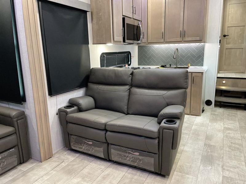 With any Momentum M-Class toy hauler by Grand Design, you will enjoy luxury at every turn! They have been constructed to a superior standard with a thermal roof design, triple insulated main floor and garage floor, and a Rail-Tite underbelly seal that will allow you to camp in all elements. Each model also features a, 8' 5" wide body chassis with a wide rail design, no wheel wheels, and a dovetail entry for easier loading. The Stealth A/C system provides maximum cooling power, and the CRE3000 suspension system means you can enjoy a smooth tow each time. You will love the luxurious interior with a professional grade stainless steel cooktop, interior color changing LED accent lighting, a fiberglass shower with a glass door, and solid surface countertops.