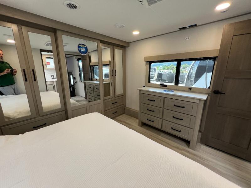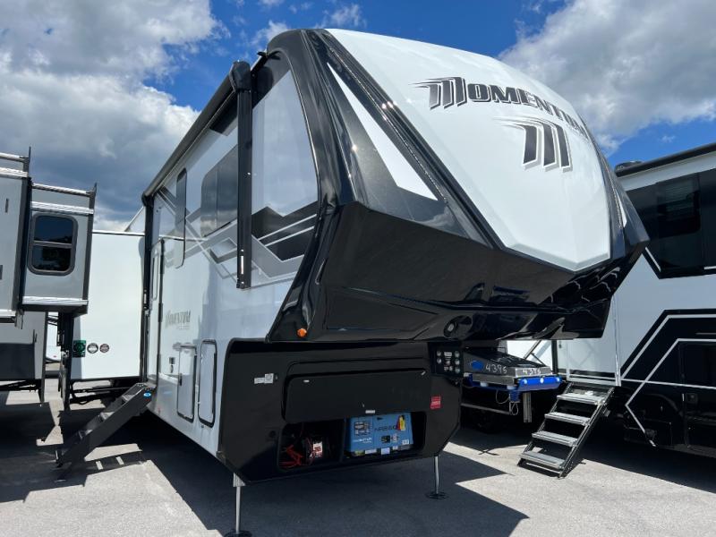 With any Momentum M-Class toy hauler by Grand Design, you will enjoy luxury at every turn! They have been constructed to a superior standard with a thermal roof design, triple insulated main floor and garage floor, and a Rail-Tite underbelly seal that will allow you to camp in all elements. Each model also features a, 8' 5" wide body chassis with a wide rail design, no wheel wheels, and a dovetail entry for easier loading. The Stealth A/C system provides maximum cooling power, and the CRE3000 suspension system means you can enjoy a smooth tow each time. You will love the luxurious interior with a professional grade stainless steel cooktop, interior color changing LED accent lighting, a fiberglass shower with a glass door, and solid surface countertops.