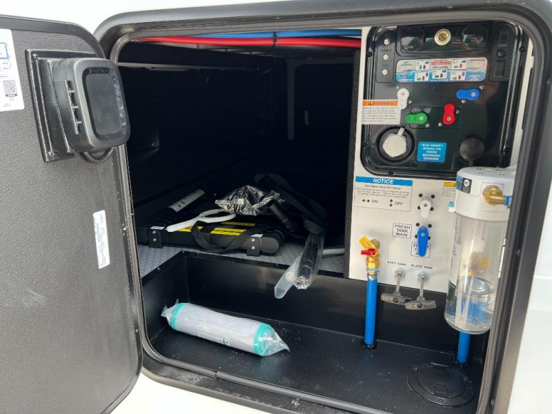 Any time spent in this spacious toy hauler will be time well spent! The 14' garage includes an overhead loft bed and a flip-up pet dish for your furry friends. If you're needing more sleeping space, you might want to choose the optional Liftsuite System and optional half bath. Once you enter in the main living area, you can relax on the L-shaped sofa with recline across from the fireplace, and there is a free-standing dinette if you want to play a game or two. The chef of your group will love the generous counter space in the kitchen, and the dual entry bath will let everyone stay clean throughout your trip! Head to the front master bedroom to enjoy the queen bed slide out with an optional king bed, a slide top dresser with TV prep, plus a large front closet, complete with washer and dryer prep!