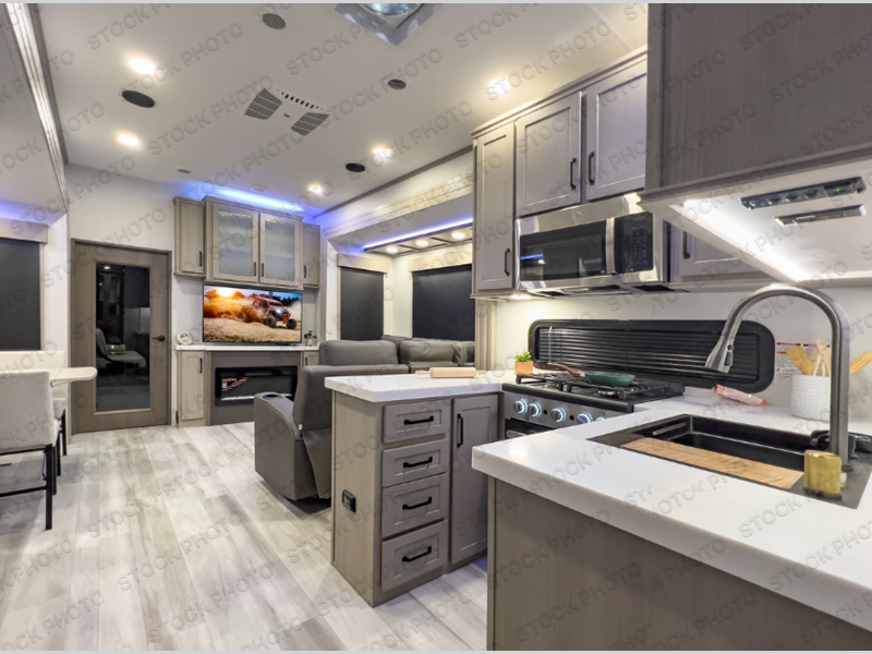 With any Momentum M-Class toy hauler by Grand Design, you will enjoy luxury at every turn! They have been constructed to a superior standard with a thermal roof design, triple insulated main floor and garage floor, and a Rail-Tite underbelly seal that will allow you to camp in all elements. Each model also features a, 8' 5" wide body chassis with a wide rail design, no wheel wheels, and a dovetail entry for easier loading. The Stealth A/C system provides maximum cooling power, and the CRE3000 suspension system means you can enjoy a smooth tow each time. You will love the luxurious interior with a professional grade stainless steel cooktop, interior color changing LED accent lighting, a fiberglass shower with a glass door, and solid surface countertops.