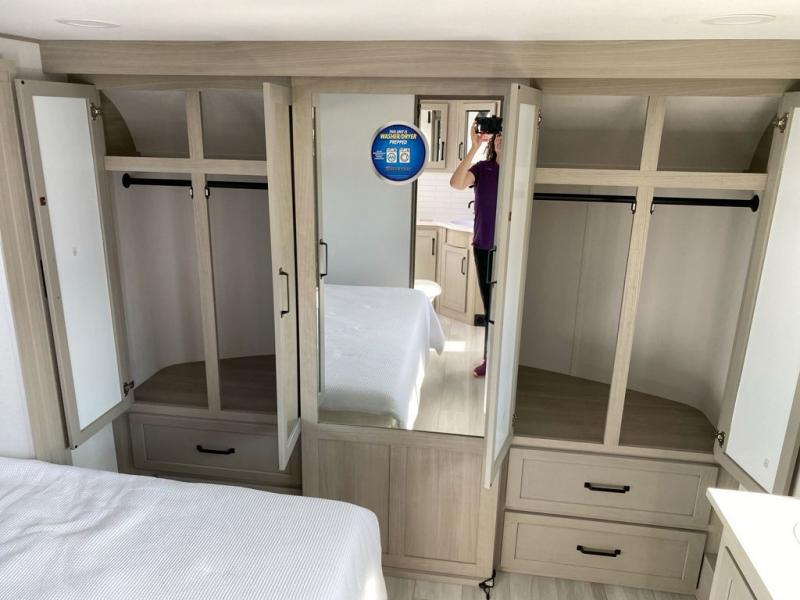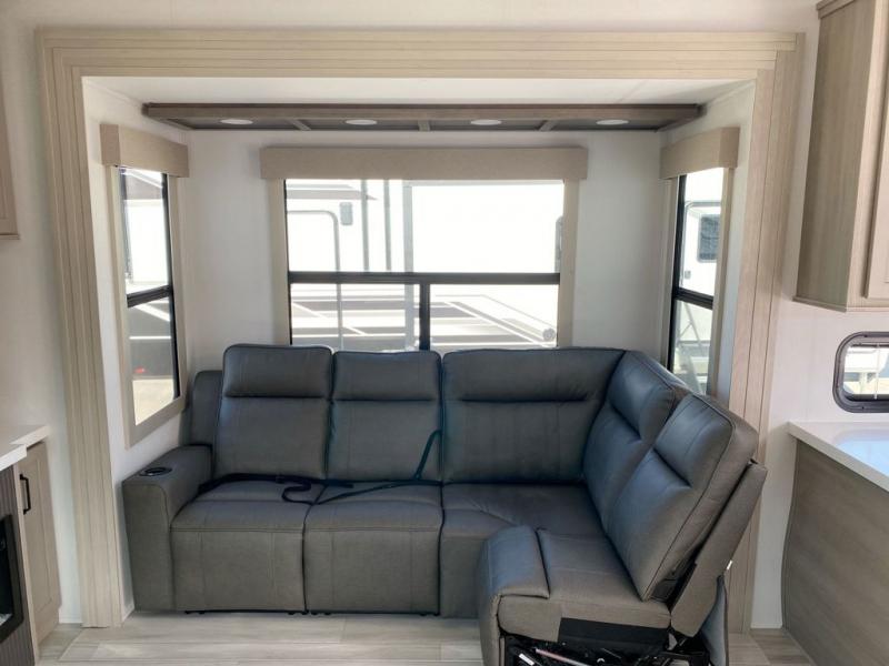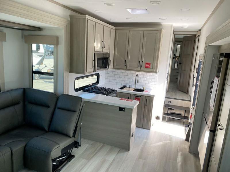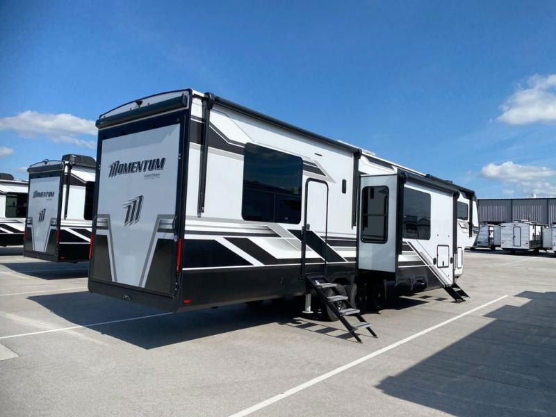 The Momentum fifth wheel toy haulers by Grand Design are built for four seasons of travel with your off-road toys and include luxurious accommodations throughout for extreme living! Each is constructed to a superior standard with the fully enclosed and heated underbelly and storage area, the 5-sided aluminum cage, and the triple insulated garage floor. The MORryde CRE3000 suspension system and rubber pin box, plus the upgraded axle hangers provide the performance and smooth towing you desire, while the interior offers luxury such as color changing LED accent lighting, hardwood cabinet doors with hidden hinges, and a central vacuum system. Each toy hauler also includes four packages, including the Garage Package with Tuff-Ply gas and oil-resistant flooring, the Weather-Tek Package with a Stealth AC System, and the Interior Luxury Package with solid surface countertops!