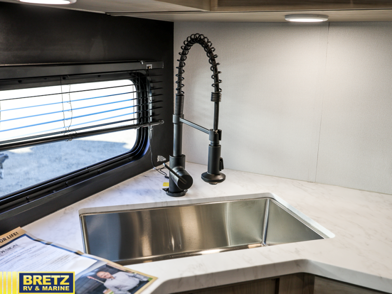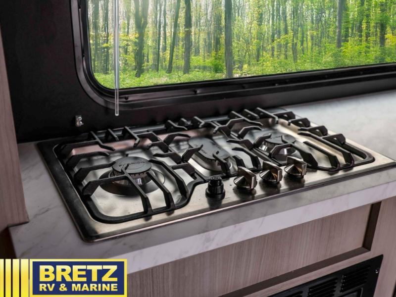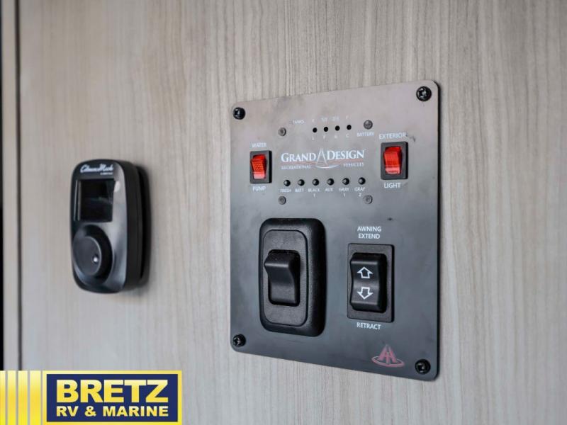 The Momentum MAV toy hauler travel trailers by Grand Design are designed to provide exactly what you need. The spacious garage provides tons of cargo space, with no wheel wells to get in the way. Additional storage includes magnetic storage door catches, and overhead consoles throughout. Conveniences like motion sensor lights and USB outlets will make your life easier, and you will be comfortable in all seasons with the 30K BTU furnace plus 15K BTU ducted air conditioning. The standard Solar Package comes with a 180W solar panel, a 40 Amp charge controller with Bluetooth, and a 12V refrigerator so you can go off-grid when the adventure calls for it.