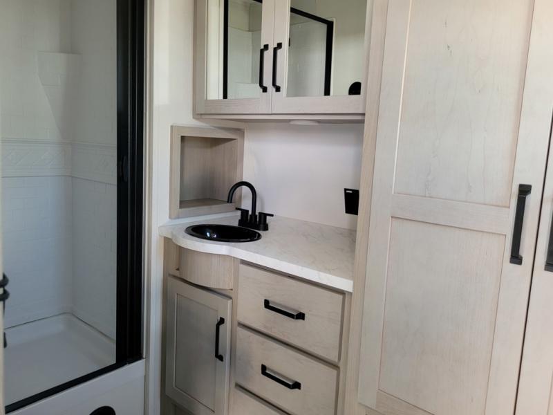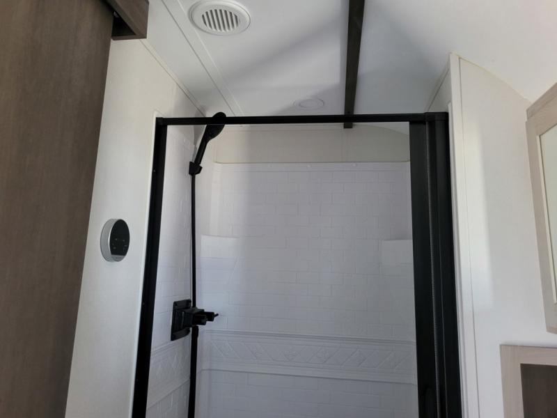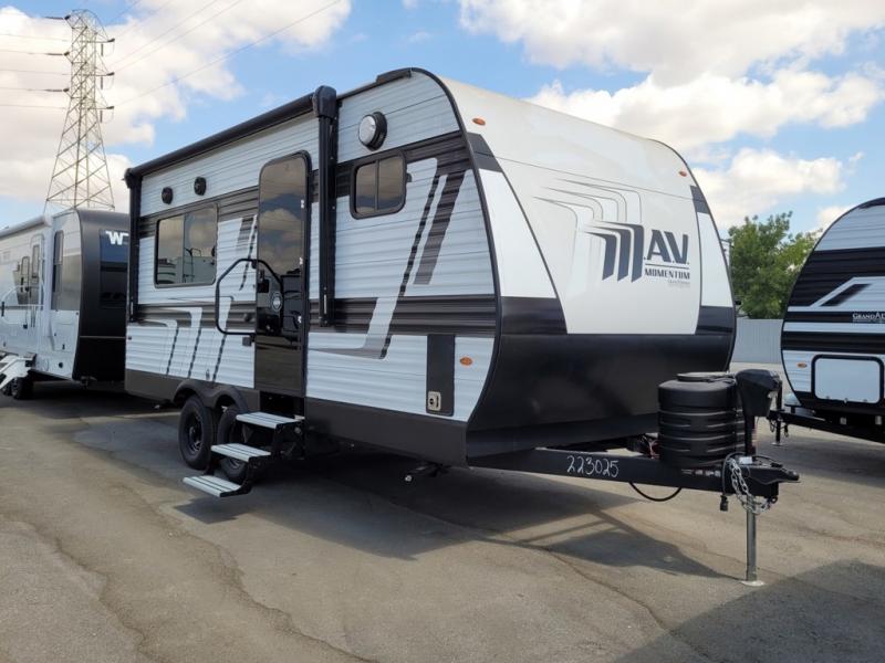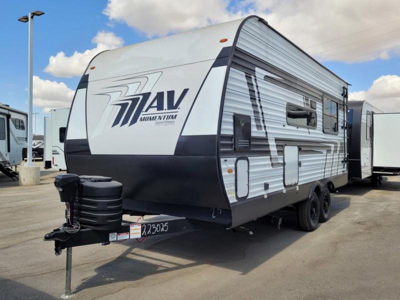 The Momentum MAV toy hauler travel trailers by Grand Design are designed to provide exactly what you need. The spacious garage provides tons of cargo space, with no wheel wells to get in the way. Additional storage includes magnetic storage door catches, and overhead consoles throughout. Conveniences like motion sensor lights and USB outlets will make your life easier, and you will be comfortable in all seasons with the 30K BTU furnace plus 15K BTU ducted air conditioning. The standard Solar Package comes with a 180W solar panel, a 40 Amp charge controller with Bluetooth, and a 12V refrigerator so you can go off-grid when the adventure calls for it.