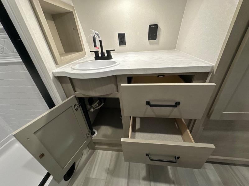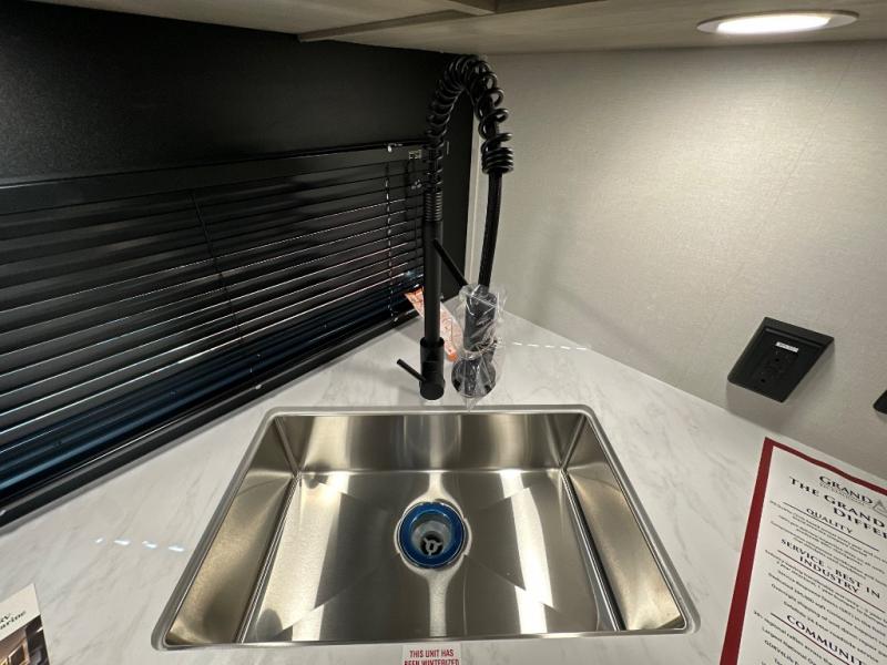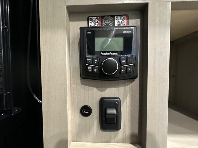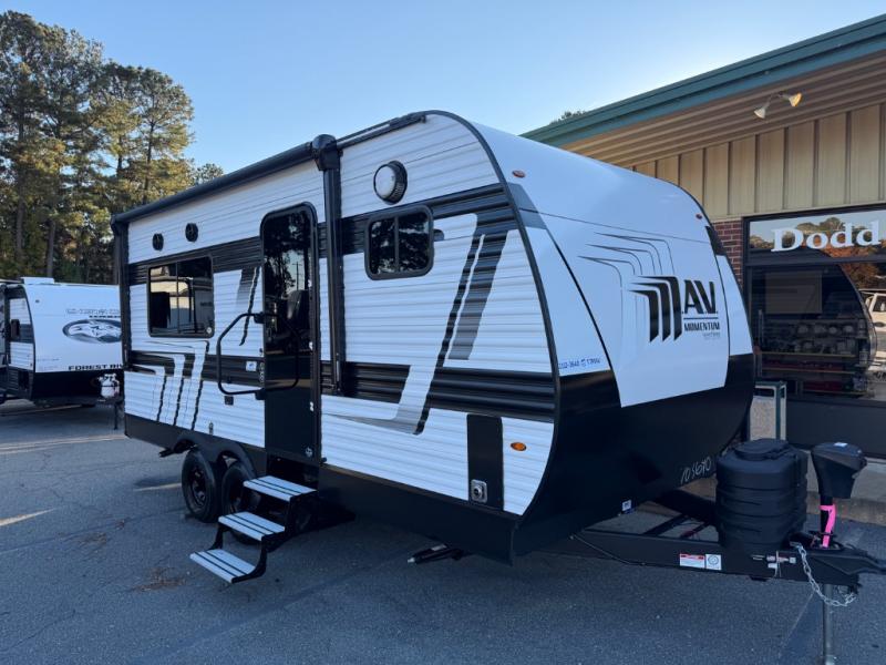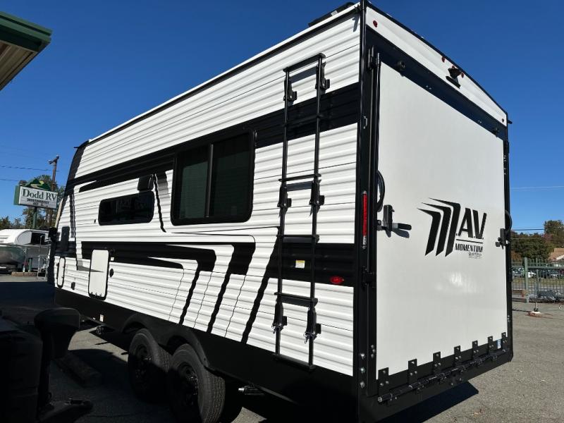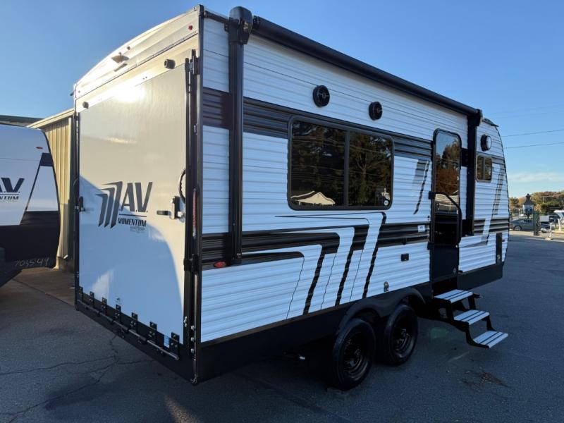 The Momentum MAV toy hauler travel trailers by Grand Design are designed to provide exactly what you need. The spacious garage provides tons of cargo space, with no wheel wells to get in the way. Additional storage includes magnetic storage door catches, and overhead consoles throughout. Conveniences like motion sensor lights and USB outlets will make your life easier, and you will be comfortable in all seasons with the 30K BTU furnace plus 15K BTU ducted air conditioning. The standard Solar Package comes with a 180W solar panel, a 40 Amp charge controller with Bluetooth, and a 12V refrigerator so you can go off-grid when the adventure calls for it.