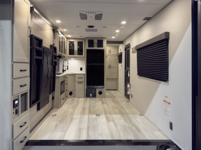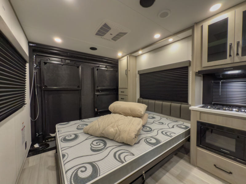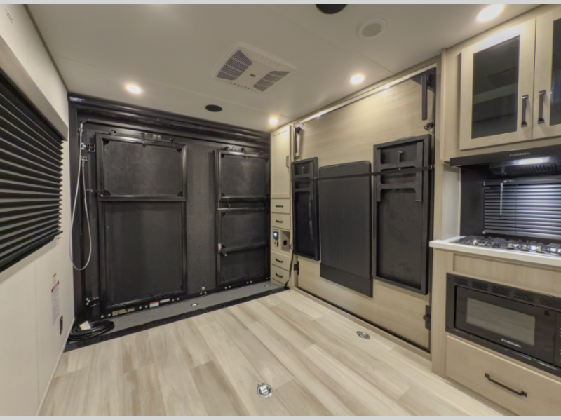 With Grand Design’s reputation for craftsmanship, you’ll find thoughtful details throughout—from magnetic storage door catches to a durable, no-wheel-well garage floor that maximizes usable space.