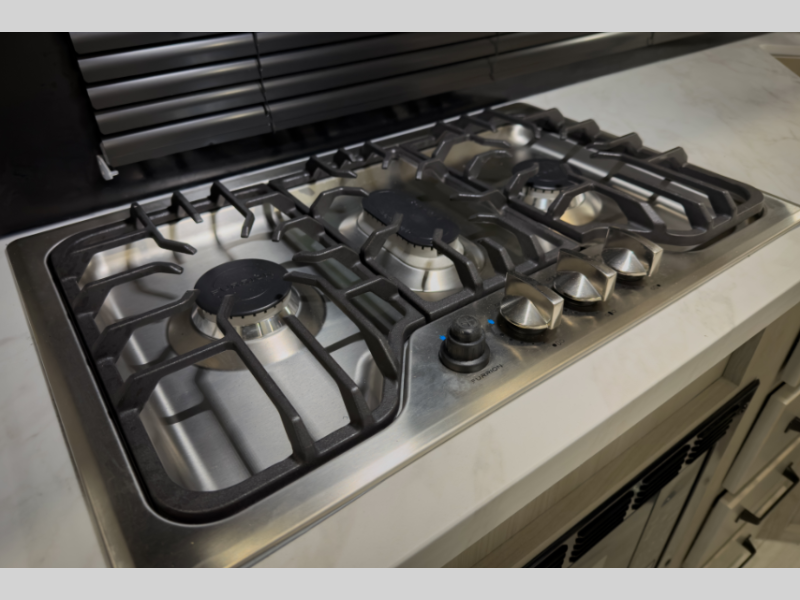 Fuel up with home-cooked meals on the three-burner range, and keep everything fresh in the 12V 8 cu. ft. refrigerator. The microwave and ample overhead storage make it easy to prepare and store all your camp favorites.