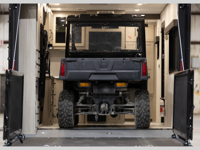 Bring all your favorite toys along in the 11' 6" garage, equipped with 2,500 lb. tie-downs to keep your gear secure while you travel. The ramp door doubles as a patio, creating an outdoor lounge perfect for relaxing after an adrenaline-filled day.