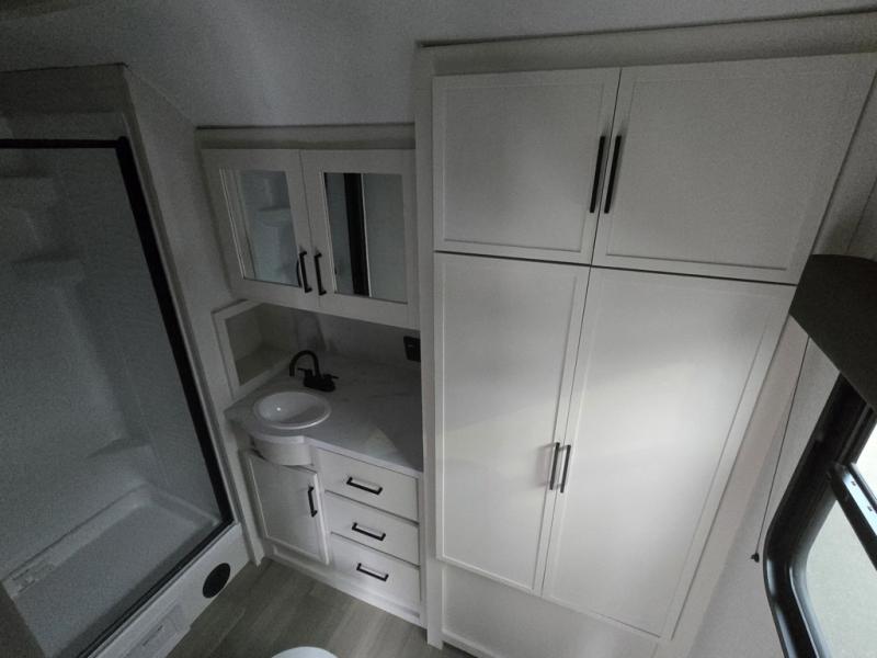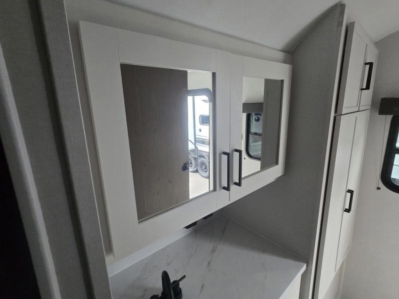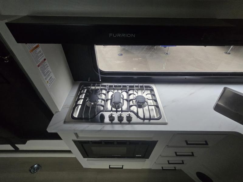 Get ready to take your adventures to the next level with this amazing toy Hauler. A spacious interior features a queen-sized murphy bed, perfect for relaxing after a long day of exploring. A convenient microwave and three-burner cooktop offer endless culinary possibilities, while a 12V 8cu. refrigerator keeps your essentials at the perfect temperature. Ample overhead cabinets provide additional storage for gear, cookware, and more. At the front of this toy hauler, a full bathroom with a closet provides a private retreat, and the ramp door/patio offers easy access to your toys and outdoor living space. Plus, a 13' awning offers shade and protection from the elements.