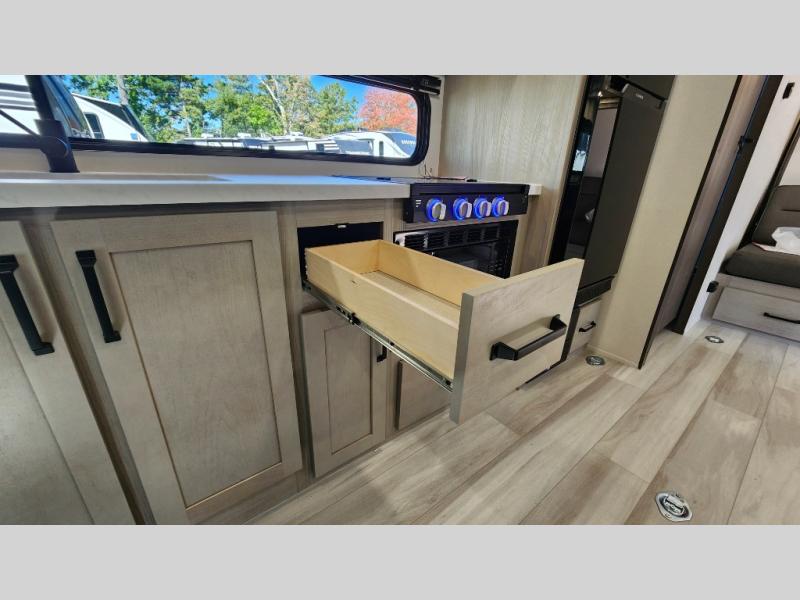The 22MAV is a true off-grid-ready toy hauler with the space to carry your gear and the comfort to enjoy every moment after the ride. It’s perfect for weekend warriors, adventure-loving couples, or families who like to travel with bikes, boards, and bold plans.