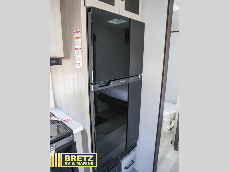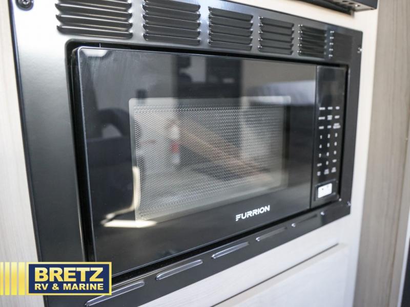 The Momentum MAV toy hauler travel trailers by Grand Design are designed to provide exactly what you need. The spacious garage provides tons of cargo space, with no wheel wells to get in the way. Additional storage includes magnetic storage door catches, and overhead consoles throughout. Conveniences like motion sensor lights and USB outlets will make your life easier, and you will be comfortable in all seasons with the 30K BTU furnace plus 15K BTU ducted air conditioning. The standard Solar Package comes with a 180W solar panel, a 40 Amp charge controller with Bluetooth, and a 12V refrigerator so you can go off-grid when the adventure calls for it.