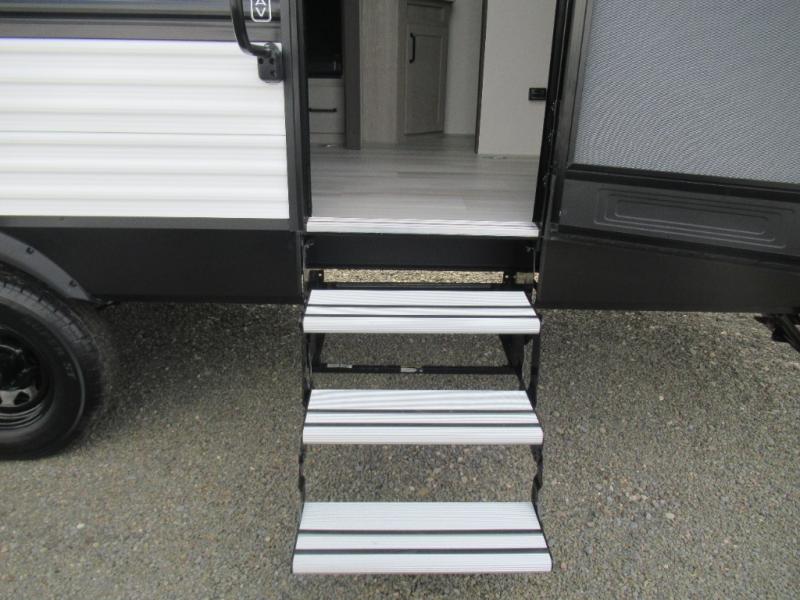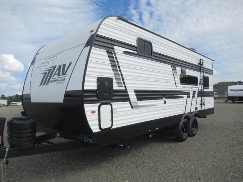 The Momentum MAV toy hauler travel trailers by Grand Design are designed to provide exactly what you need. The spacious garage provides tons of cargo space, with no wheel wells to get in the way. Additional storage includes magnetic storage door catches, and overhead consoles throughout. Conveniences like motion sensor lights and USB outlets will make your life easier, and you will be comfortable in all seasons with the 30K BTU furnace plus 15K BTU ducted air conditioning. The standard Solar Package comes with a 180W solar panel, a 40 Amp charge controller with Bluetooth, and a 12V refrigerator so you can go off-grid when the adventure calls for it.