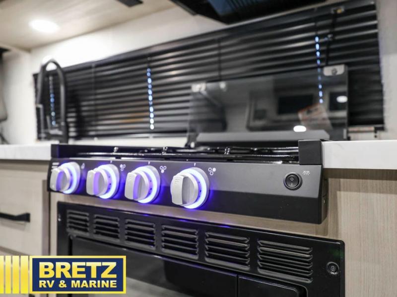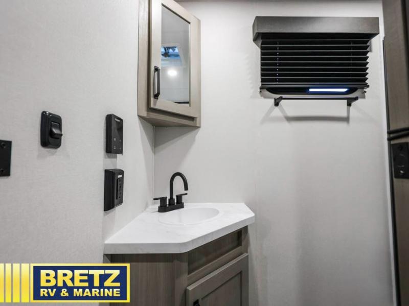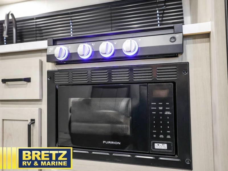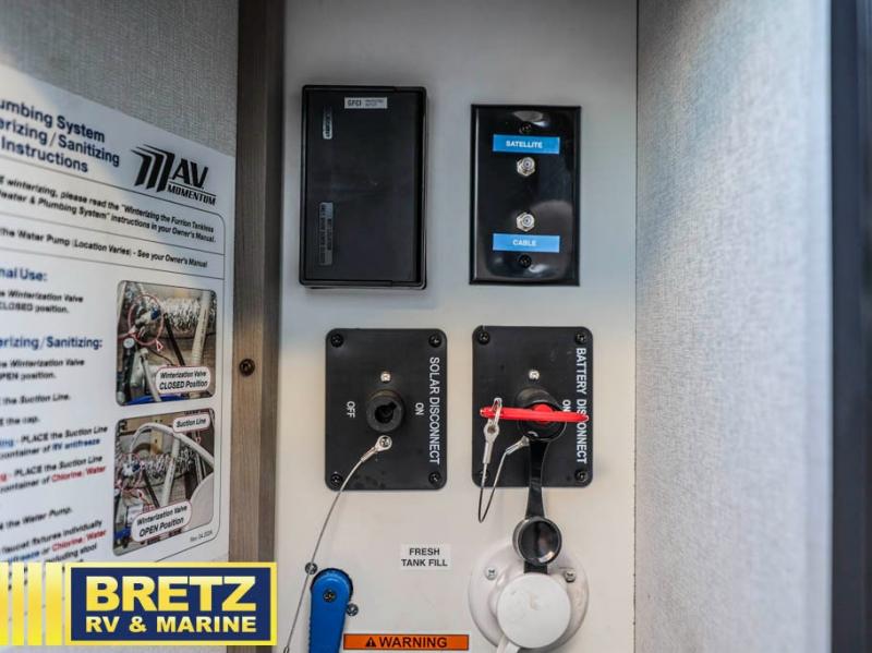 The Momentum MAV toy hauler travel trailers by Grand Design are designed to provide exactly what you need. The spacious garage provides tons of cargo space, with no wheel wells to get in the way. Additional storage includes magnetic storage door catches, and overhead consoles throughout. Conveniences like motion sensor lights and USB outlets will make your life easier, and you will be comfortable in all seasons with the 30K BTU furnace plus 15K BTU ducted air conditioning. The standard Solar Package comes with a 180W solar panel, a 40 Amp charge controller with Bluetooth, and a 12V refrigerator so you can go off-grid when the adventure calls for it.