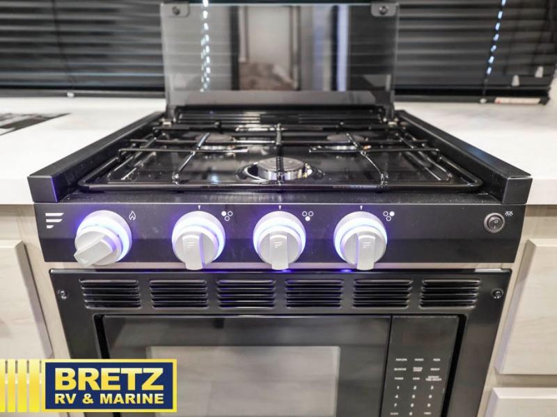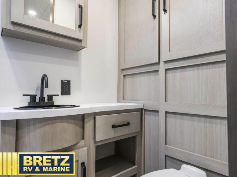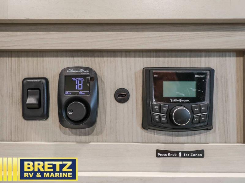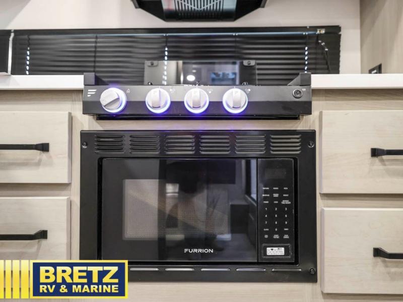 The Momentum MAV toy hauler travel trailers by Grand Design are designed to provide exactly what you need. The spacious garage provides tons of cargo space, with no wheel wells to get in the way. Additional storage includes magnetic storage door catches, and overhead consoles throughout. Conveniences like motion sensor lights and USB outlets will make your life easier, and you will be comfortable in all seasons with the 30K BTU furnace plus 15K BTU ducted air conditioning. The standard Solar Package comes with a 180W solar panel, a 40 Amp charge controller with Bluetooth, and a 12V refrigerator so you can go off-grid when the adventure calls for it.