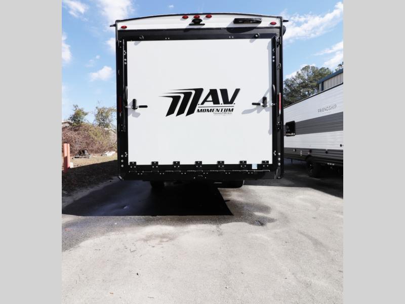 This rugged yet refined toy hauler blends innovative engineering with premium livability — whether you’re hauling ATVs, bikes, or gear for a family getaway or escaping for a romantic off-grid weekend. The Momentum MAV lineup has truly raised the bar in the industry with features that outperform the competition and provide long-lasting value.