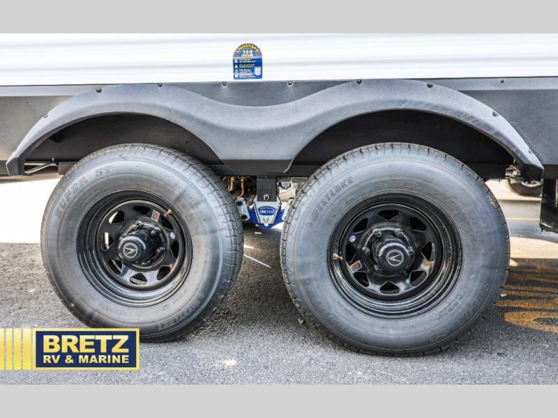 The Momentum MAV toy hauler travel trailers by Grand Design are designed to provide exactly what you need. The spacious garage provides tons of cargo space, with no wheel wells to get in the way. Additional storage includes magnetic storage door catches, and overhead consoles throughout. Conveniences like motion sensor lights and USB outlets will make your life easier, and you will be comfortable in all seasons with the 30K BTU furnace plus 15K BTU ducted air conditioning. The standard Solar Package comes with a 180W solar panel, a 40 Amp charge controller with Bluetooth, and a 12V refrigerator so you can go off-grid when the adventure calls for it.