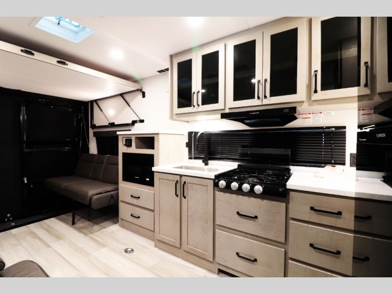 Engineered for all-season comfort: Strong insulation (R-40 roof, R-9 walls) and heated underbelly let you camp in varied climates.